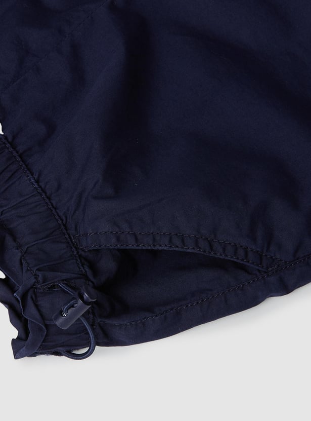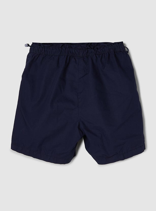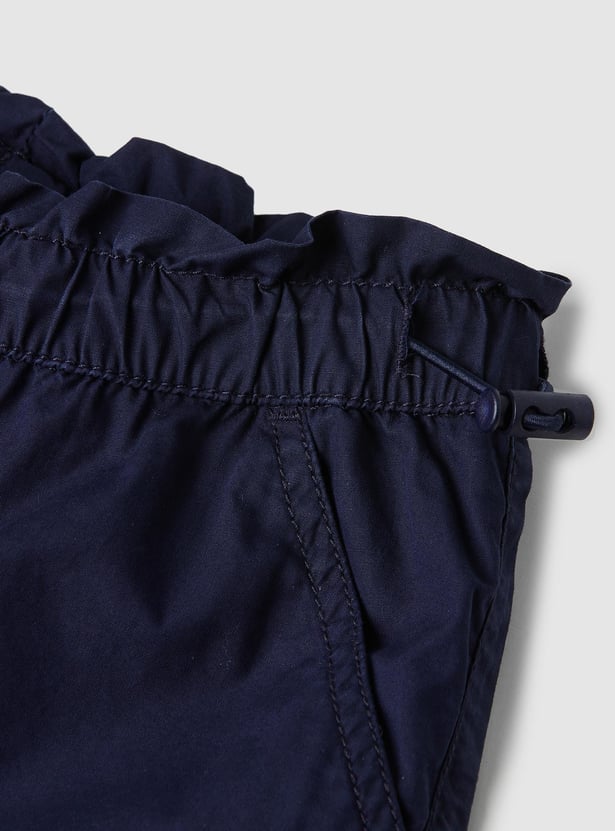 Take her style to new heights with this pair of shorts. It has a solid tone finish. It has a paper bag waist with drawcords and side pockets.