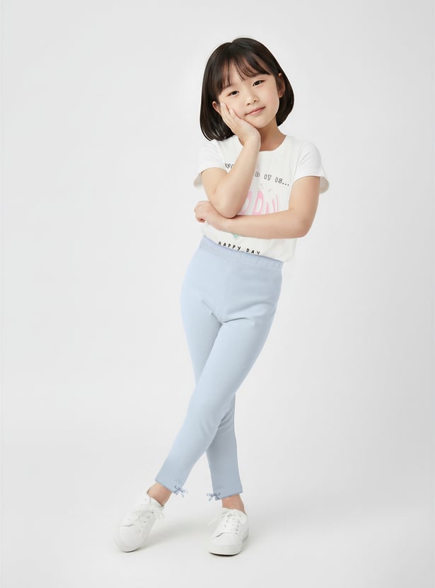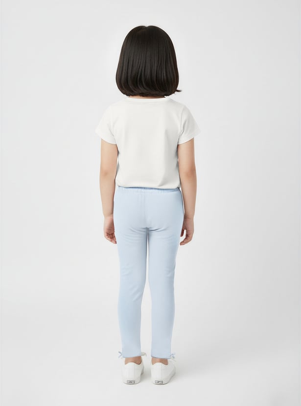 These solid leggings feature mid-rise, an elasticated waist for a snug fit and a cute bow detail at the hem, adding a touch of charm to everyday comfort.