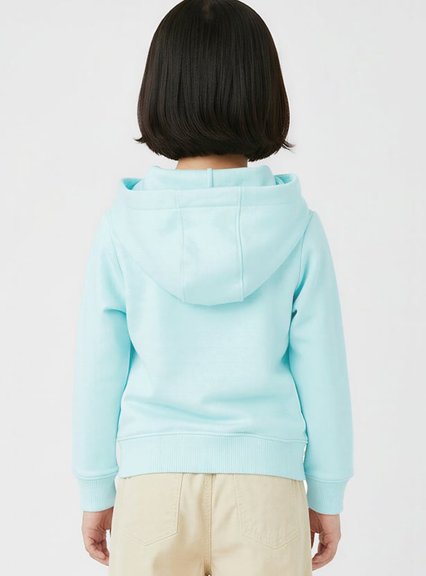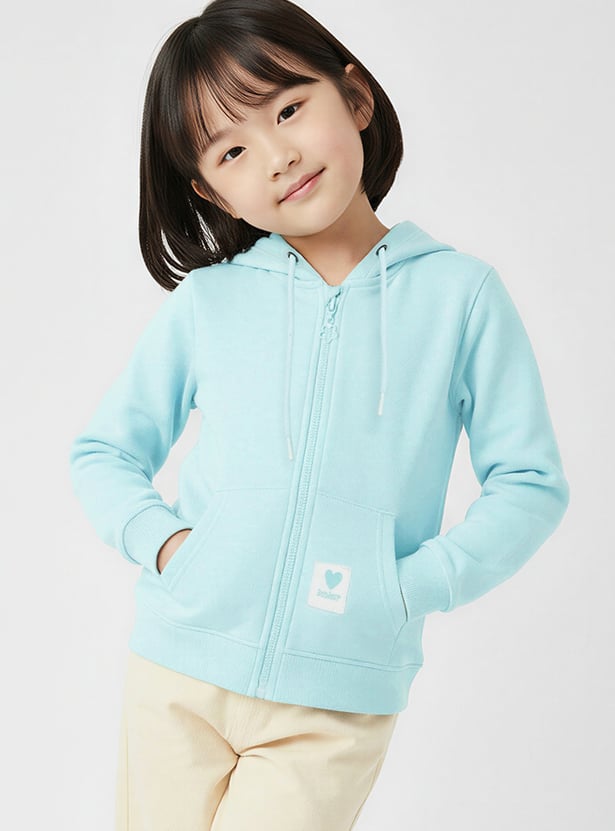 Upgrade your little one's casual layering with this solid hooded sweatshirt designed for everyday comfort. Featuring full sleeves, a zip closure, kangaroo pockets, and a ribbed hem, it offers warmth with a clean finish.