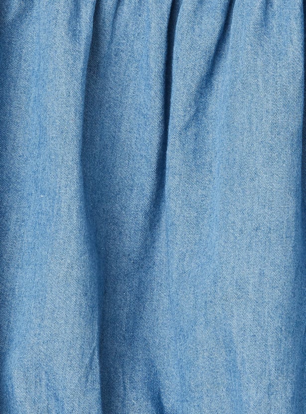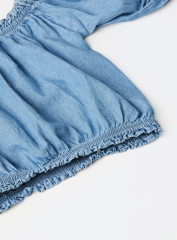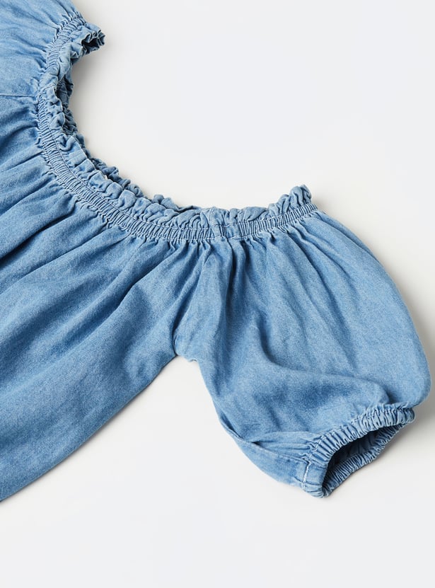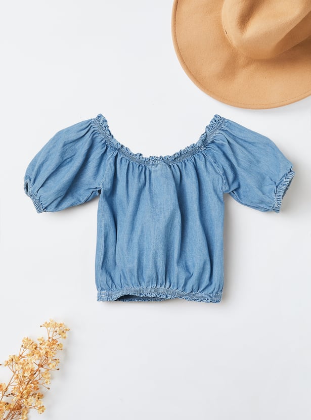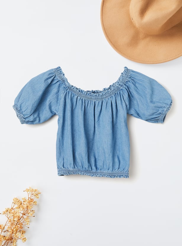 Elevate your everyday look with this solid top. Featuring a round neck, puff sleeves, and an elasticated waist, it blends comfort with a touch of flair.