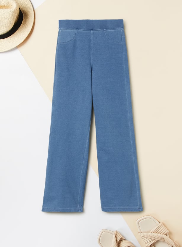 Girls Solid Wide Leg Trousers