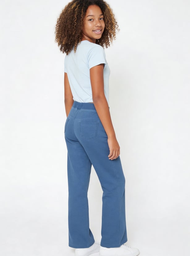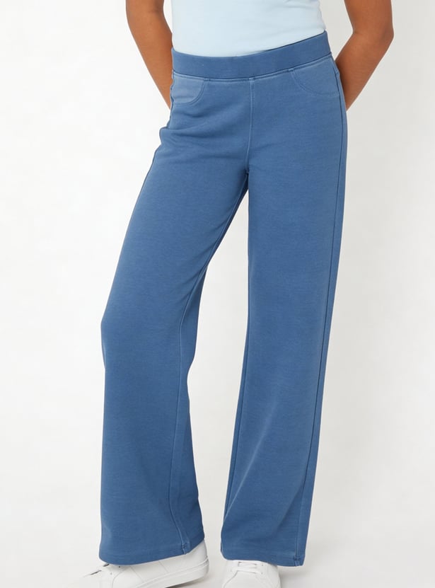Step into effortless style with these solid wide-leg trousers. Designed with an elasticated waist for comfort and functional pockets for practicality, they offer a relaxed yet polished silhouette