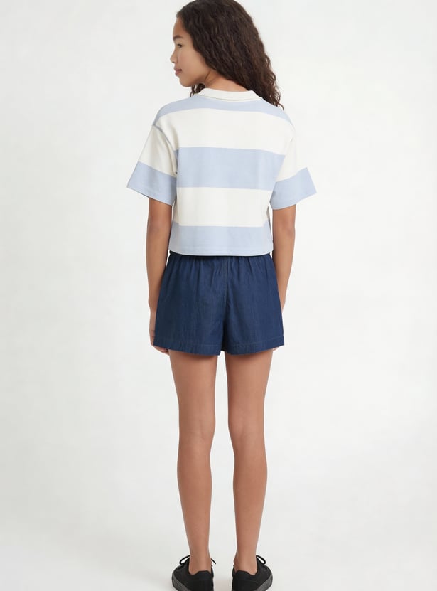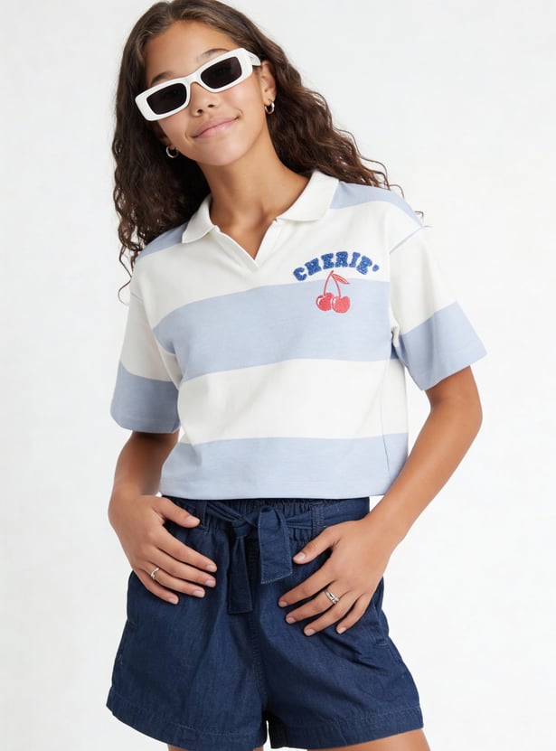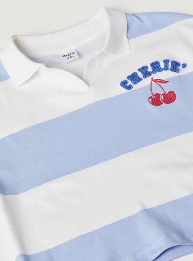Smart yet casual, this striped Johnny collar T-shirt features a distinctive Johnny collar and half sleeves for a relaxed fit. The striped pattern adds a timeless touch, while the collar detail elevates the look beyond a basic tee.
