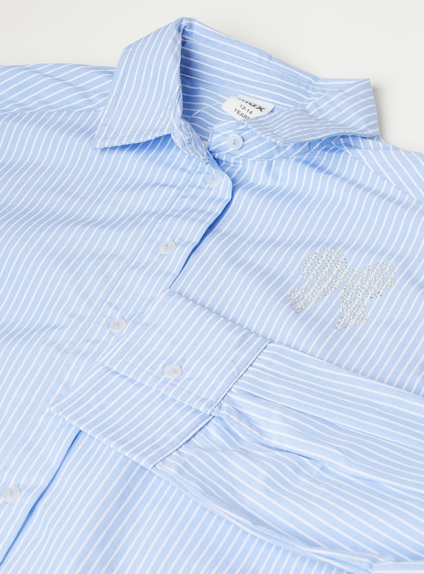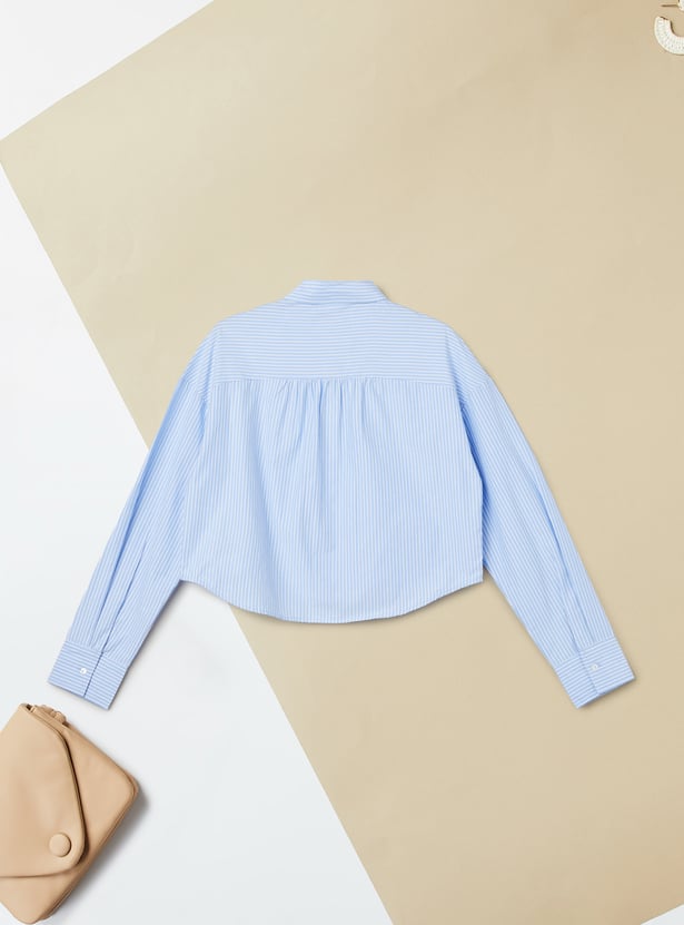 Add a touch of classic style with this striped shirt. Featuring a button placket, spread collar, and full sleeves with button cuffs for a sharp, tailored look.