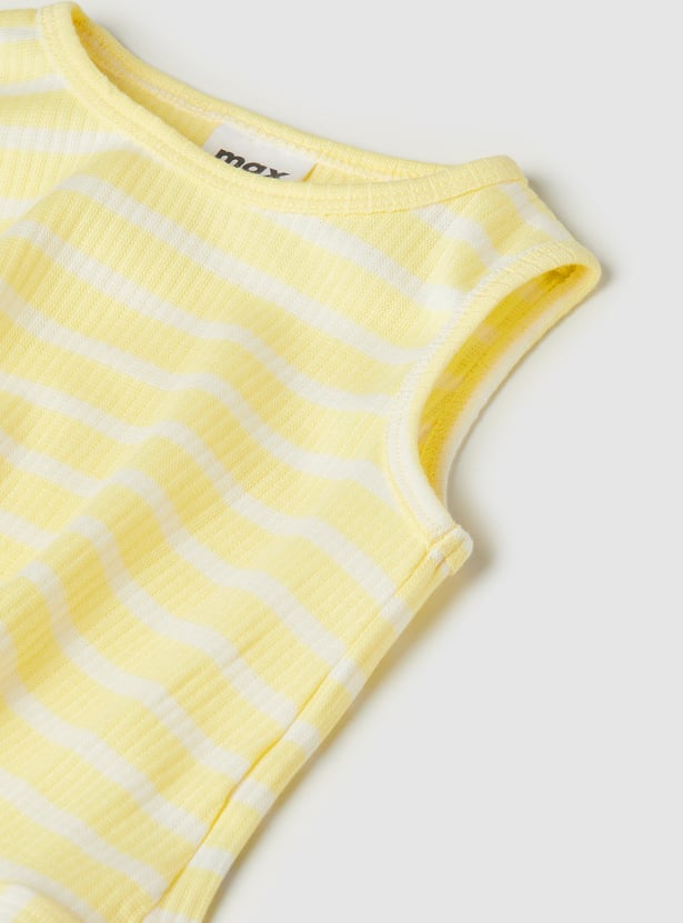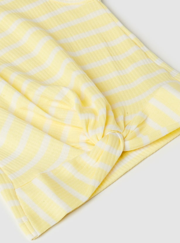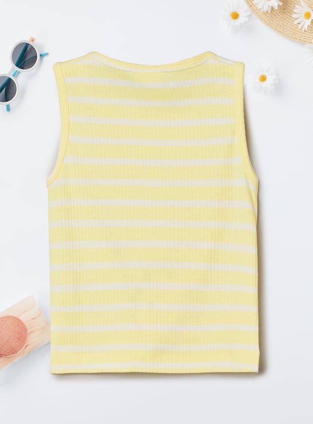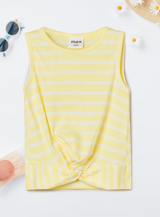 Effortlessly chic, this striped twist detail top features a flattering round neck and sleeveless silhouette. Perfect for warm days or layering, it adds a stylish twist to your everyday look.