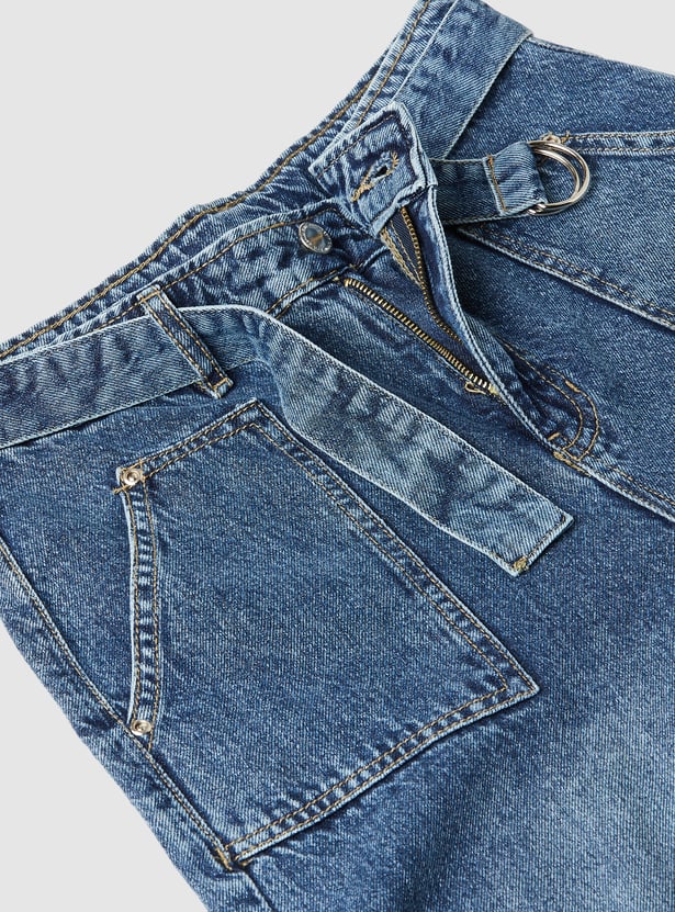 Girls Washed Belted Slim Fit Jeans