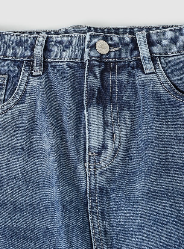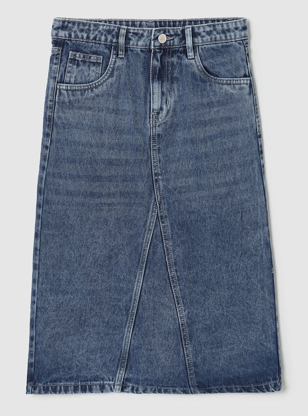 Girls Washed Denim A-line Skirt