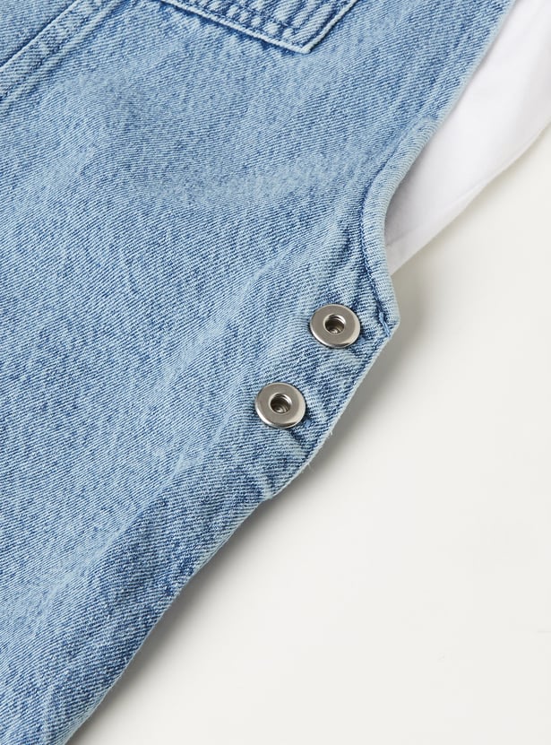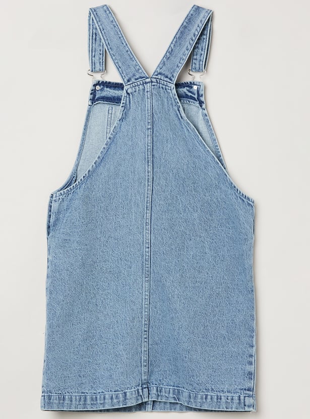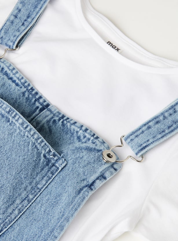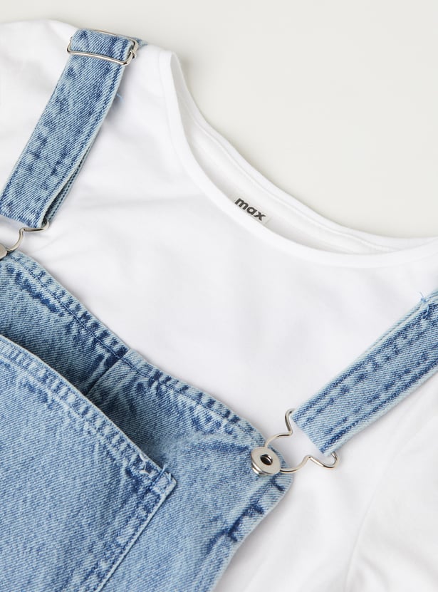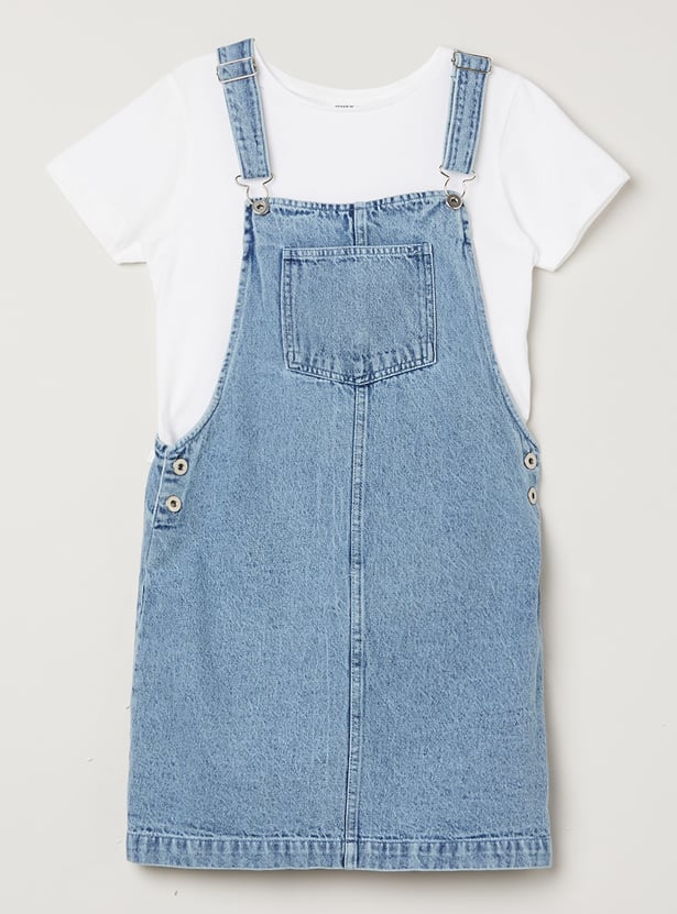 Girls Washed Denim Pinafore Dress with Tee