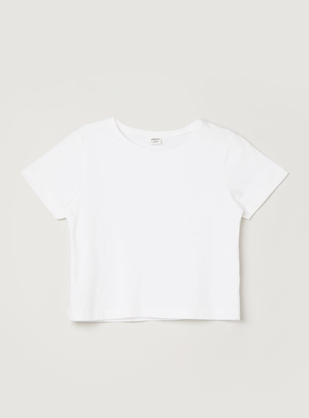 Create a trendy and comfortable look with this denim pinafore dress paired with a round neck, half-sleeve t-shirt. The knee-length pinafore dress features a button closure for easy wear, while the soft t-shirt underneath adds an extra layer of style and comfort.