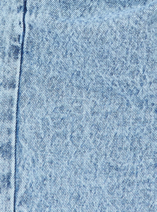 These washed denim shorts offer a laid-back vibe with a classic button closure , mid-rise, and functional pockets. The faded finish adds a cool, lived-in look perfect for casual days.