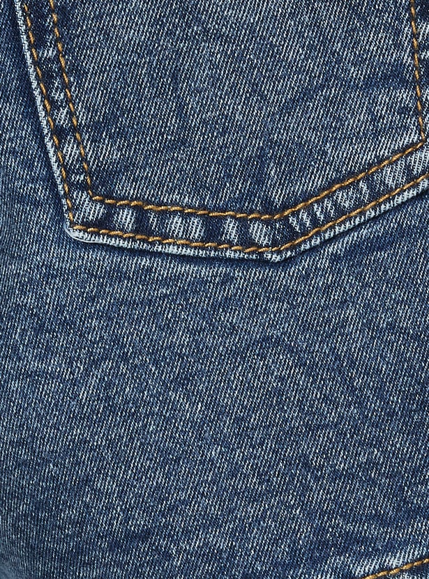 These washed denim shorts are a casual staple with a rugged finish. Featuring a button closure, belt loops for easy accessorizing, and functional pockets, they combine practicality with laid-back style.