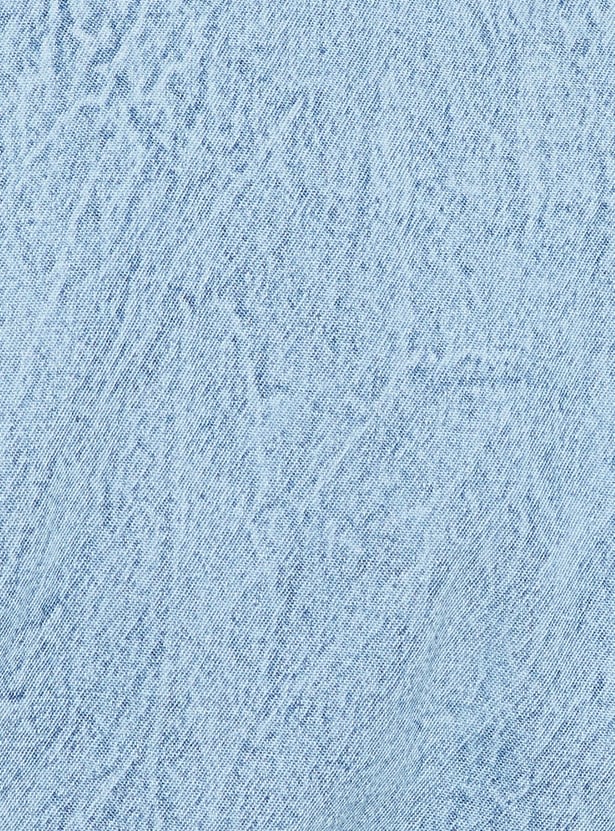 This washed denim vest top features a flattering V-neck, button closure, and a back belt for a defined fit. Its soft wash finish adds a casual yet stylish appeal to your everyday wardrobe.