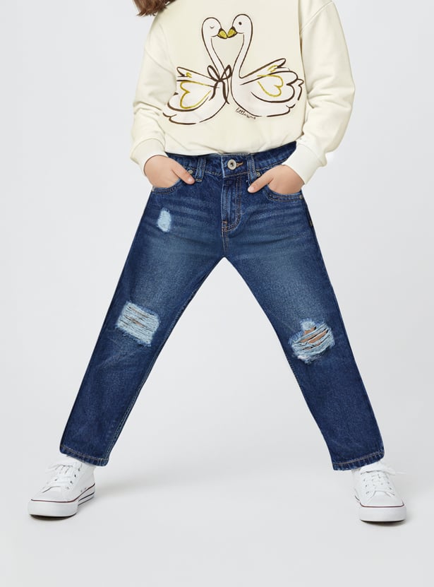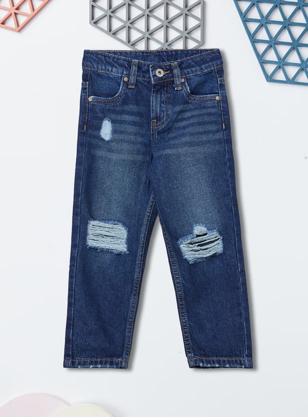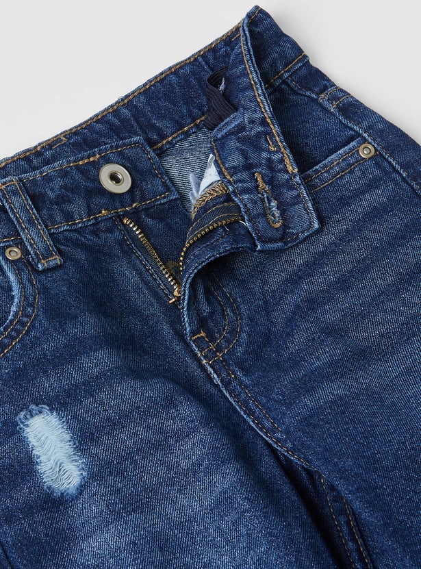 Add an edgy vibe to your wardrobe with these washed distressed jeans, featuring a button closure, belt loops, and pockets for a classic finish.