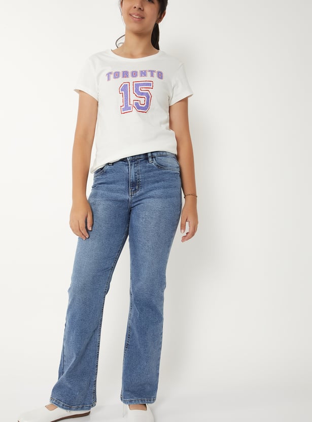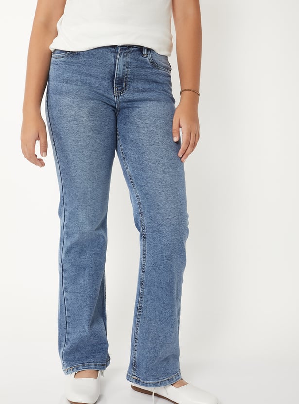 Girls Washed Flared Jeans