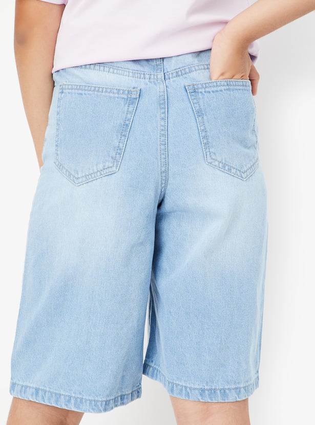 Enjoy a laid-back, stylish look with these washed shorts, featuring a button closure for a secure fit. Designed with 5 functional pockets, they offer practicality and convenience, making them perfect for casual outings or summer days.