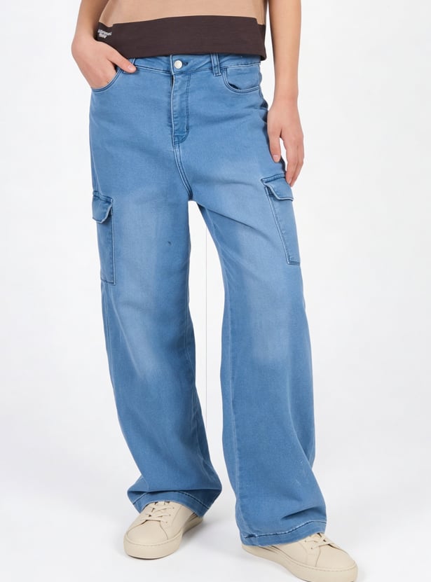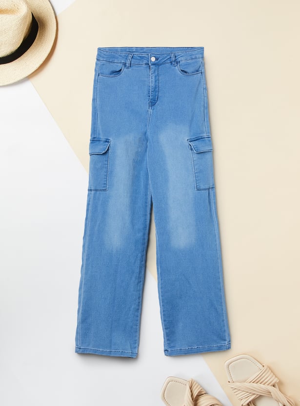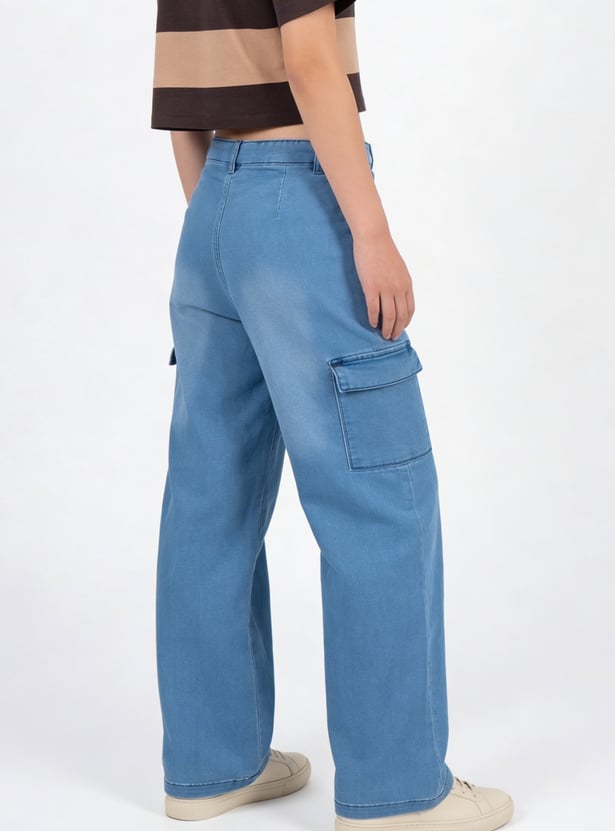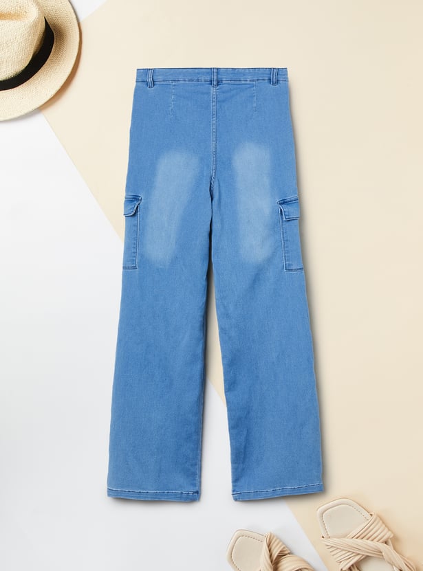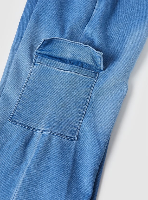 Girls Washed Slim Fit Denim Cargos
