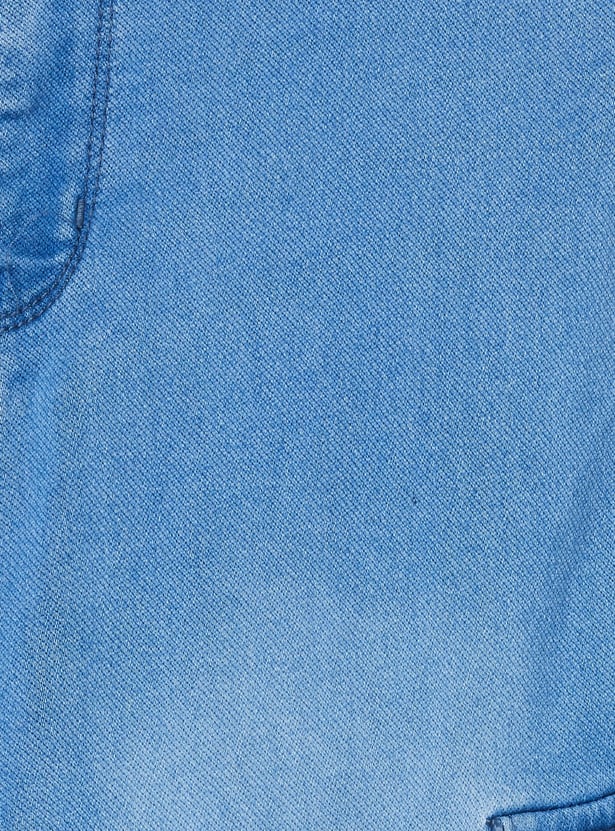 Step up your casual wardrobe with these washed slim fit denim cargos. Designed with a button closure, belt loops, and multiple pockets, they combine the rugged appeal of denim with the utility of cargo styling. The slim fit cut adds a modern edge, making them versatile for everyday wear.