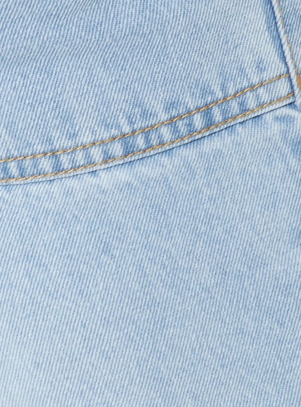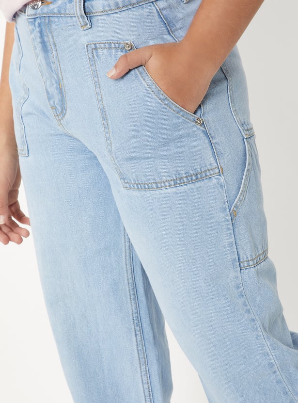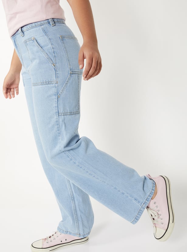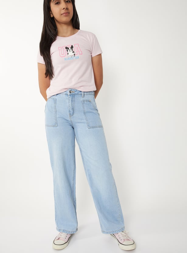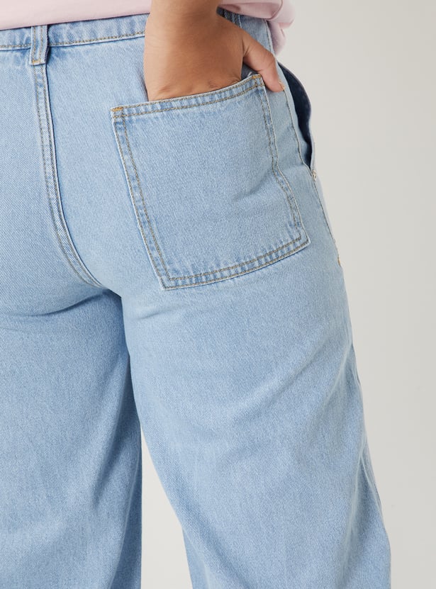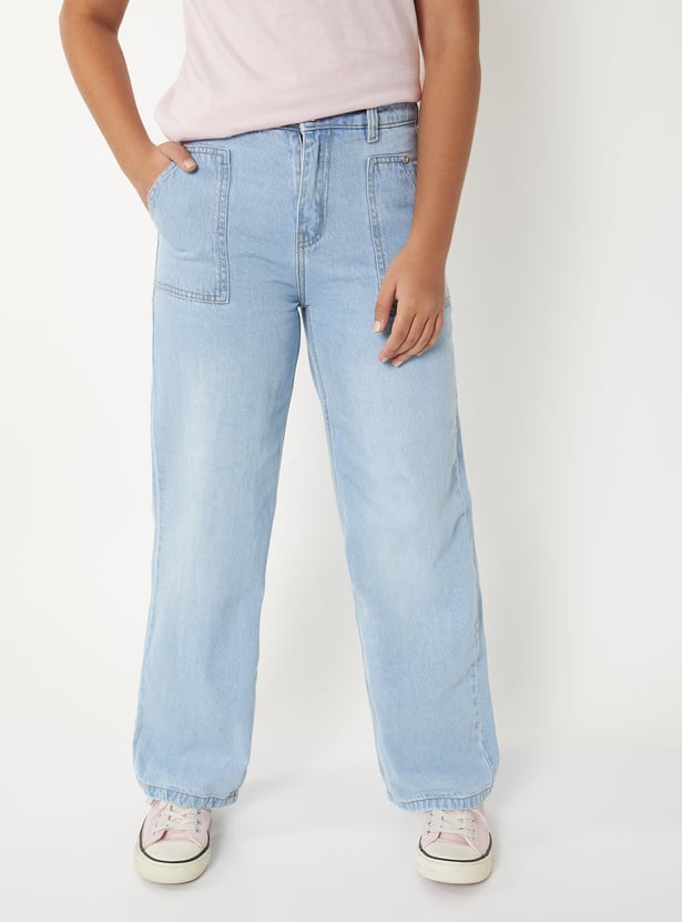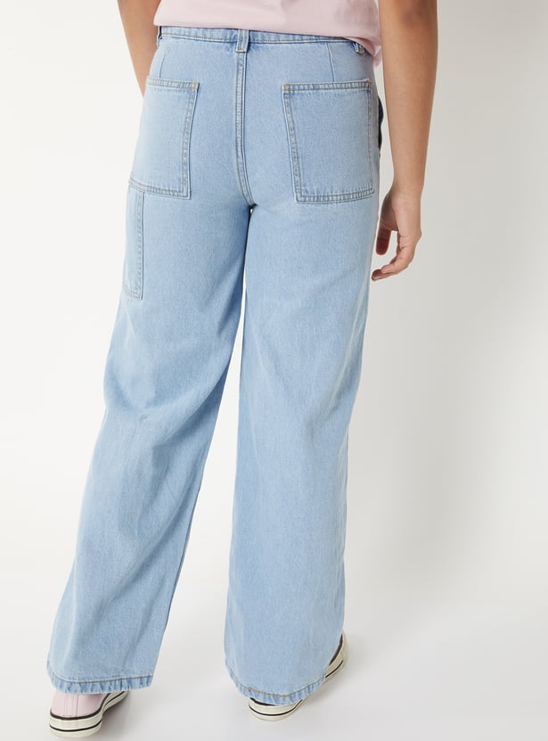 Girls Washed Slim Fit Wide Leg Jeans