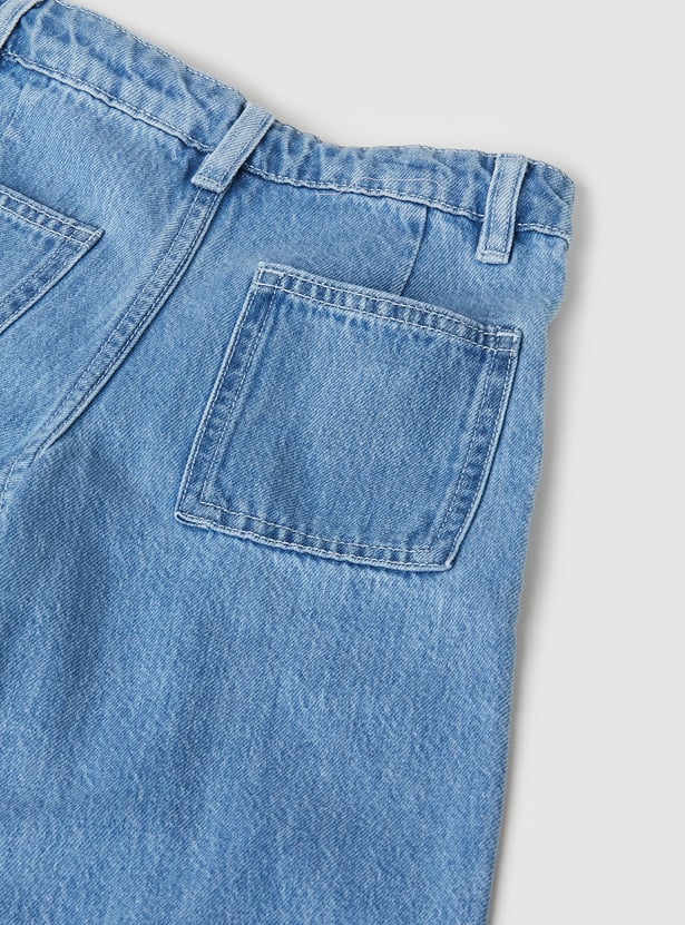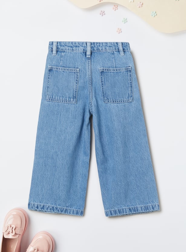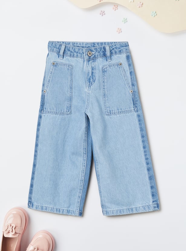 Spruce up her denim collection with this pair of jeans featuring a wide-leg profile. It has a belt loop waist, front and back patch pockets, and a washed design.