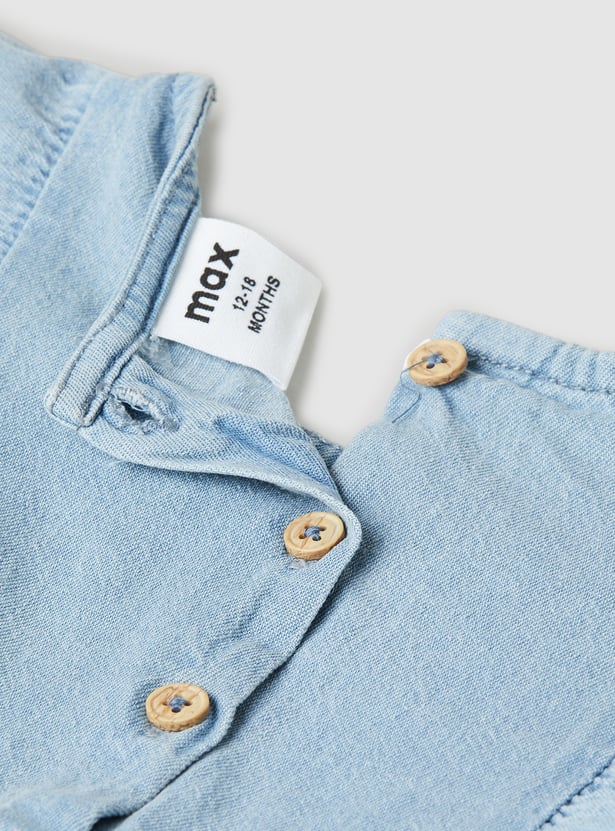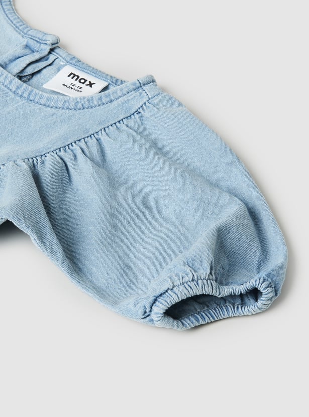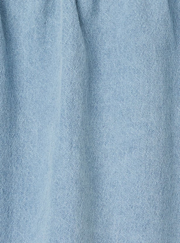 Step into effortless elegance with this yoke embroidered fit-and-flare dress. Featuring a round neck, puff sleeves, and a button closure, it offers a flattering silhouette with intricate embroidery for added charm.