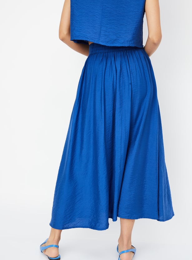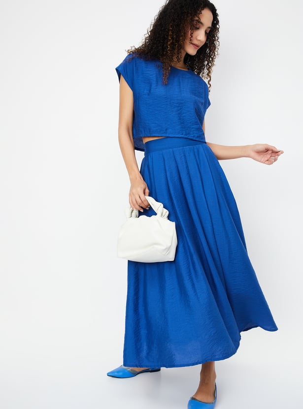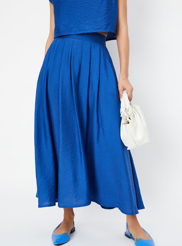 This pleated skirt can be a fresh addition to your wardrobe, offering both style and comfort in a regular fit design. The solid and ankle-length cut create a flattering, timeless look, while the pleats add a touch of movement and texture. Featuring pockets on both sides for added convenience and an elasticated waist for a secure and comfortable fit.