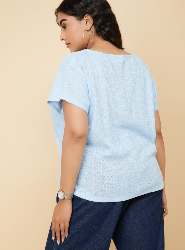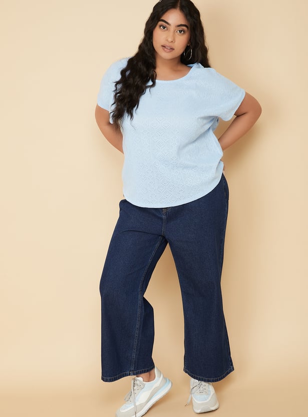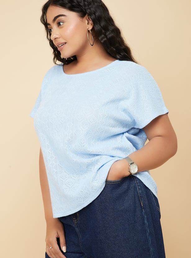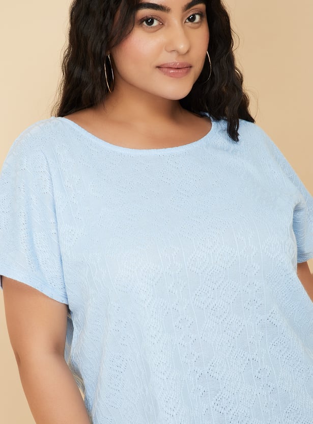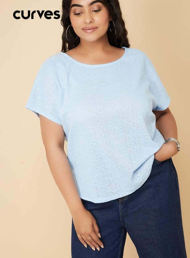 This textured top is a must-have for a relaxed and stylish look. With a round neck and half-extended sleeves, it provides a comfortable fit while offering a touch of sophistication. Model Size :