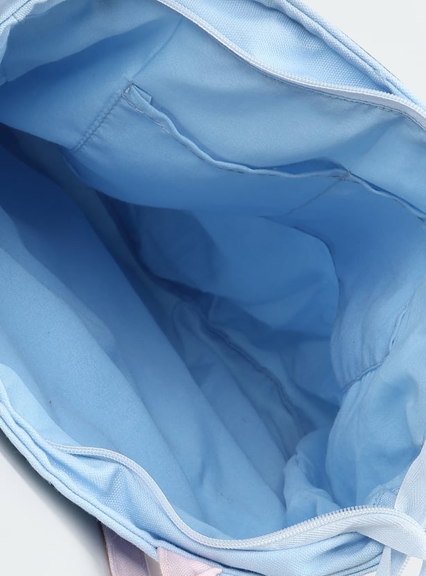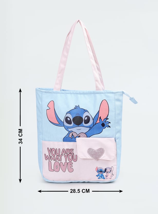 This tote bag is a playful and practical accessory for little ones. Featuring Lola and Stitch prints and a colourblock design, it is perfect for little ones on the go. The main compartment with a zip top and interior pockets is designed to hold all their essentials like books, snacks, toys, and more.