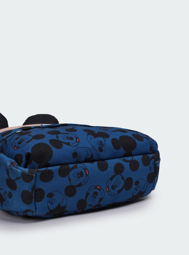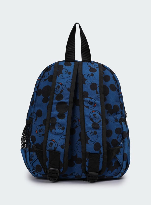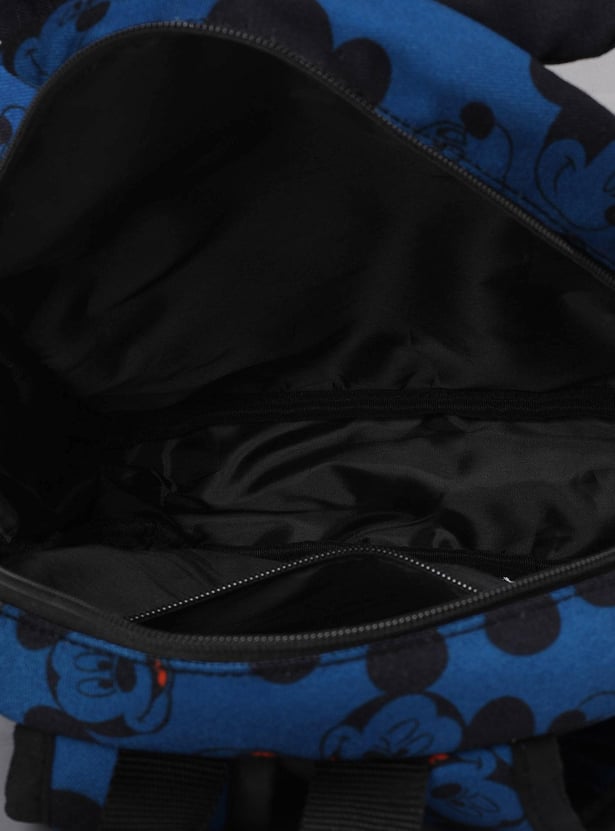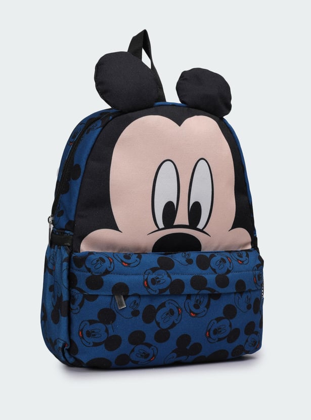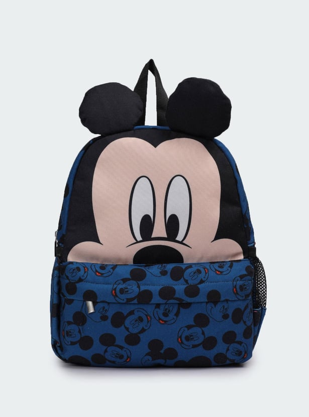 Add an element of fun to your little one’s day with this backpack. It is highlighted with Mickey Mouse prints with ear accents, a front zip pocket, and a side mesh pocket. This backpack has a zip-around top with a main compartment.