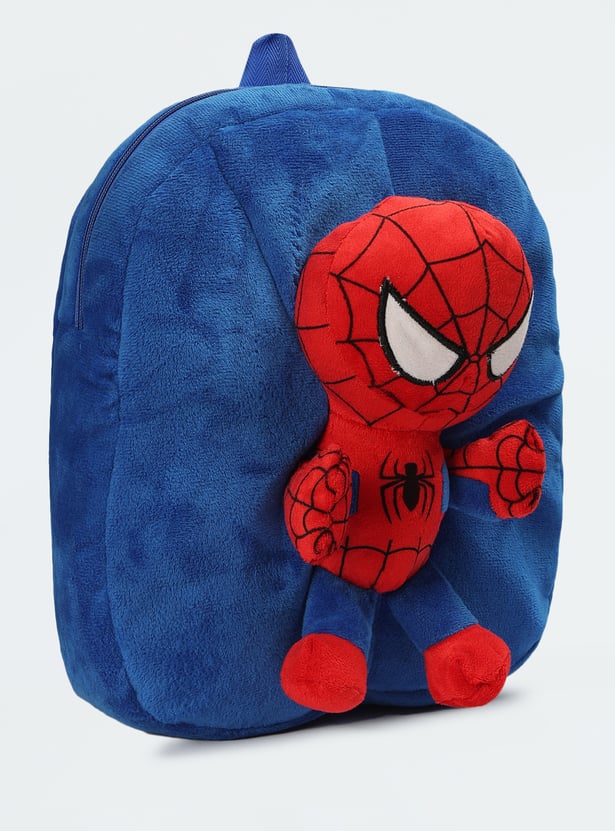 Unleash superhero style with this backpack. Featuring a vibrant and soft Spider-Man toy\, this backpack is ideal for young superheroes on the go. The adjustable straps and a zip-around main compartment add to the convenience.