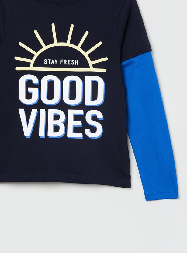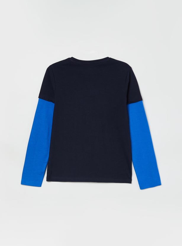 Give your little one a stylish look with this printed T-shirt. It is tailored with FULL sleeves and a crew neck.