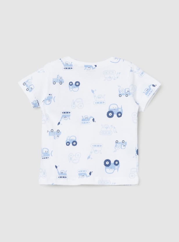 An ideal pick for your little one's casual wardrobe, this printed t-shirt is designed with half sleeves and a crew neckline.