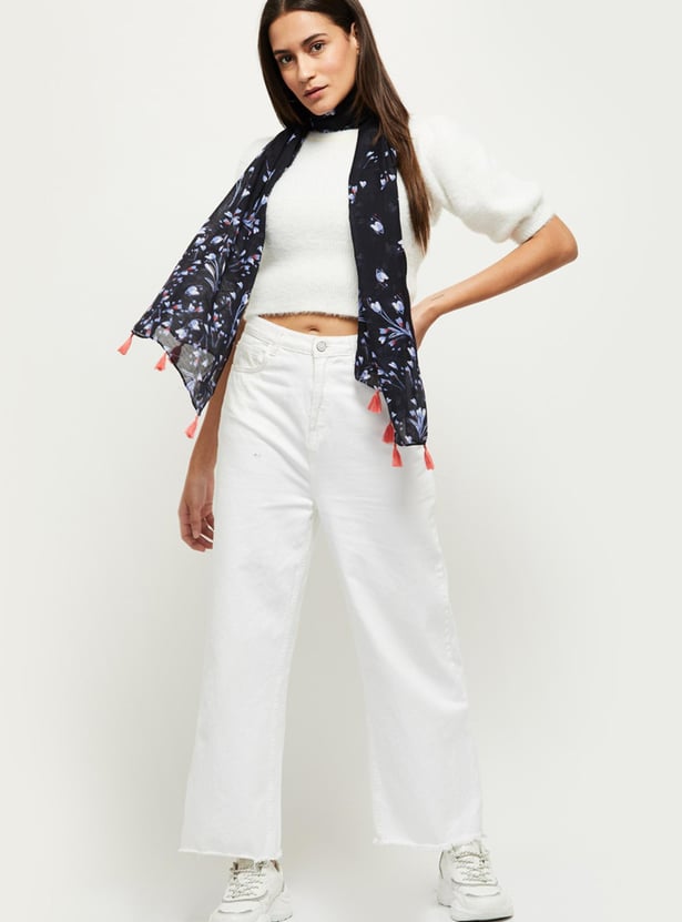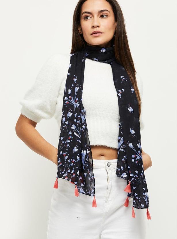MAX Women Floral Print Tassel Detailed Scarf