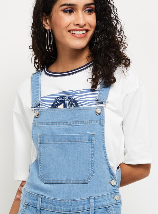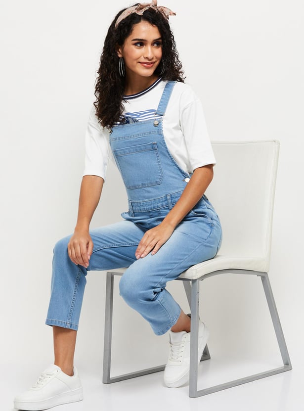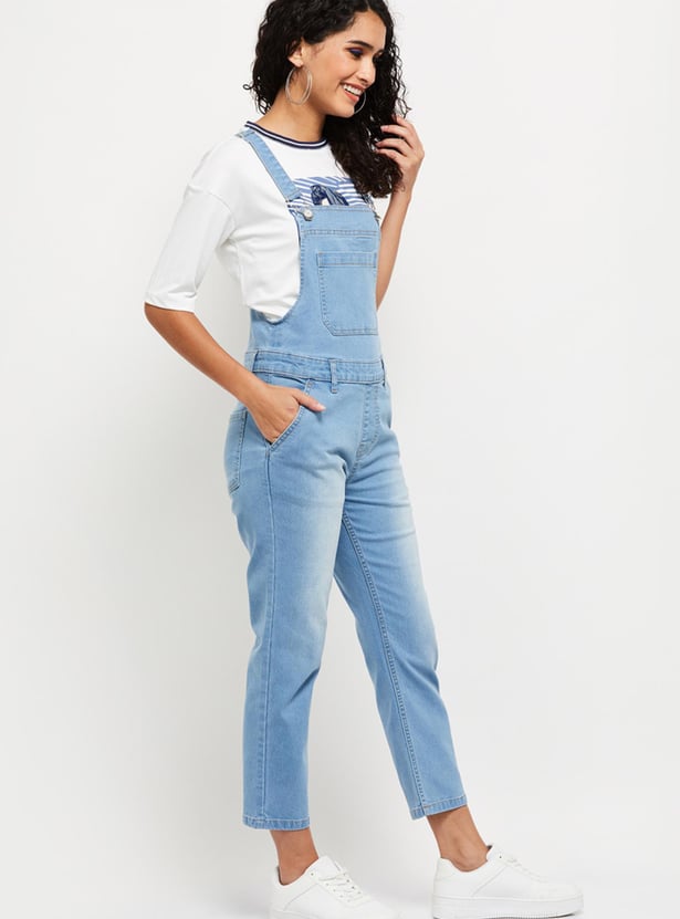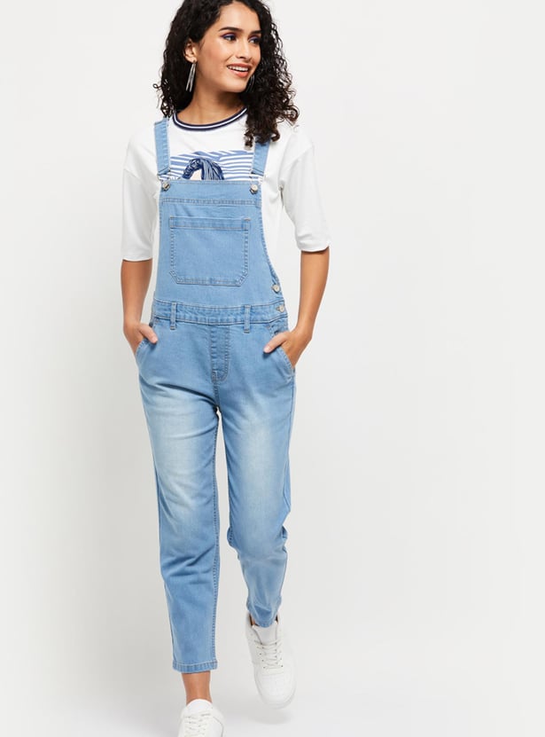This pair of dungarees feature a solid surface with a button closure and pockets, is sure to make you look beyond chic.