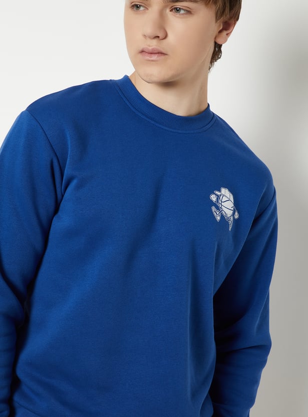Stay cozy in style with this applique sweatshirt, featuring a classic crew neck and full sleeves for a comfortable, casual fit.