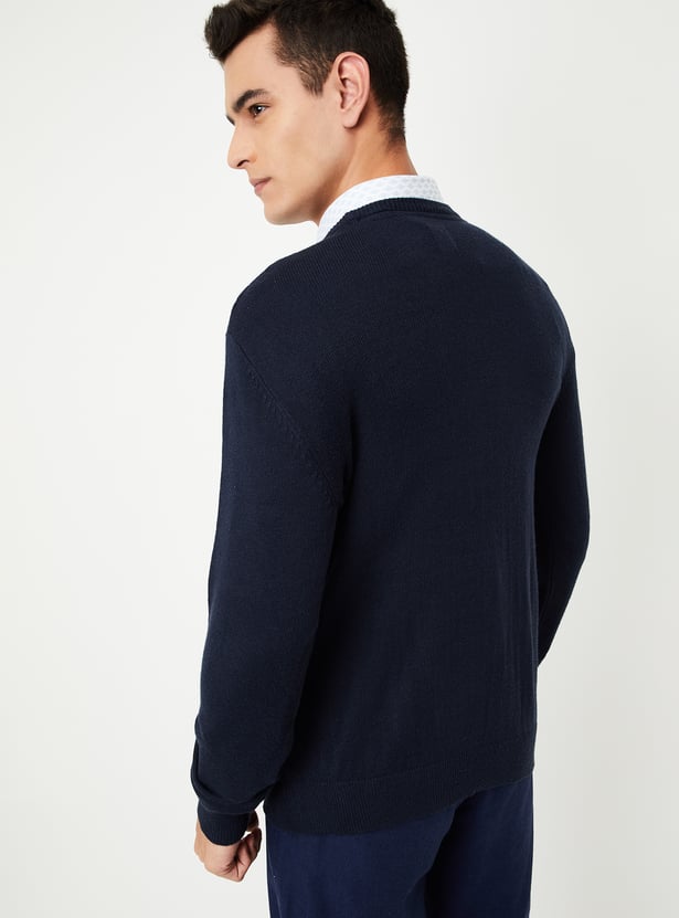 Classic warmth with a twist, this sweater features an intricate braided knit pattern. It has a round neck, a cable knit pattern for a classic look, and full sleeves. Ribbed trim adds a cosy touch.