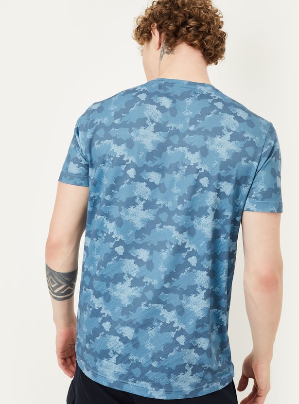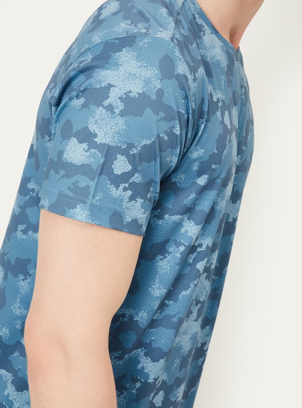 Stay active in style with this camouflage print sports T-shirt, featuring a classic crew neck and half sleeves for a comfortable, athletic fit.