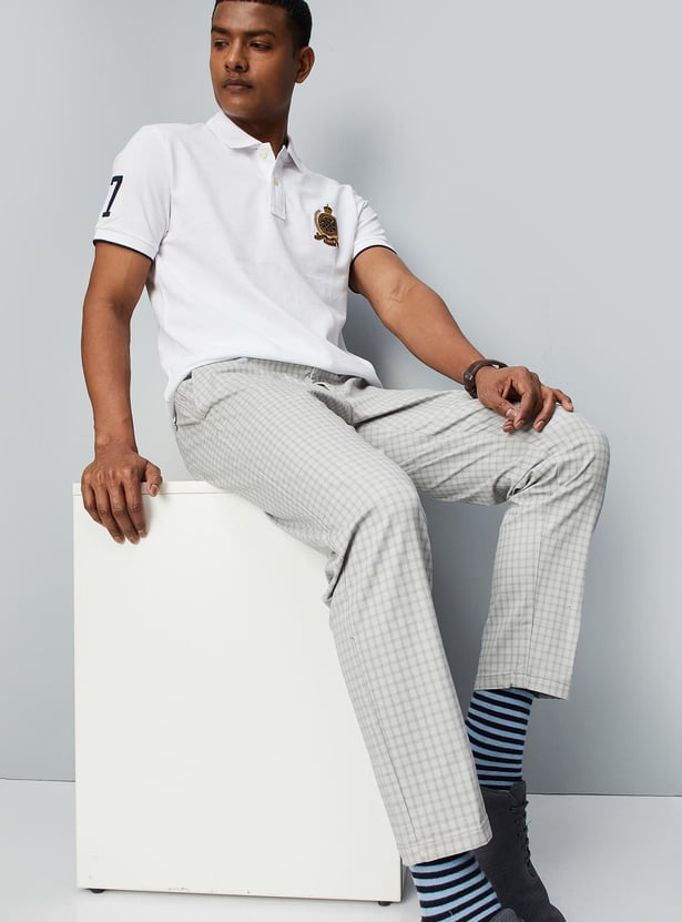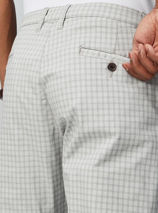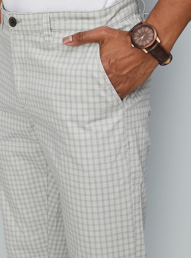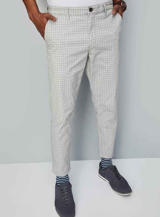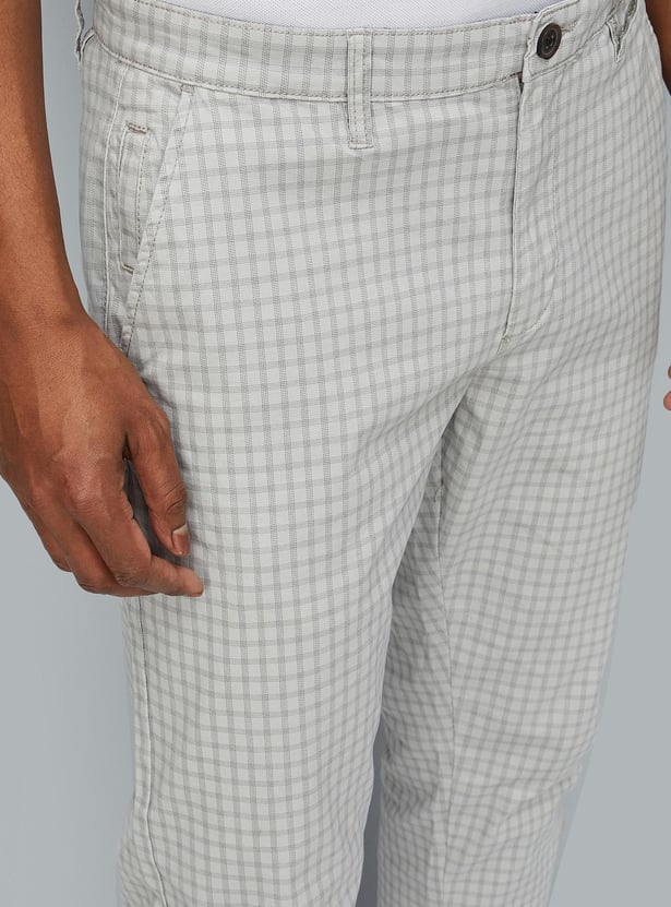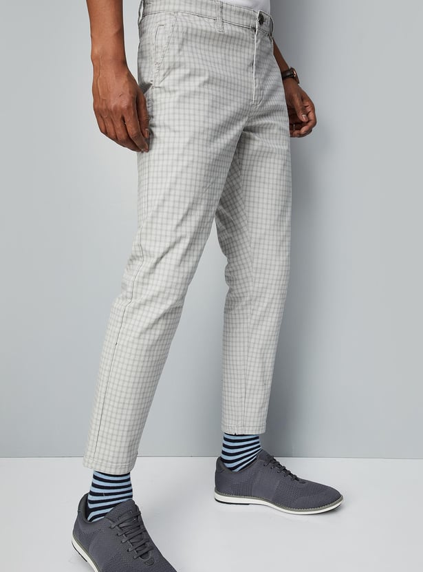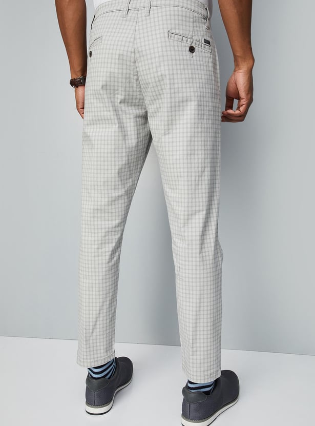 Men Carrot Fit Checked Stretch Chinos