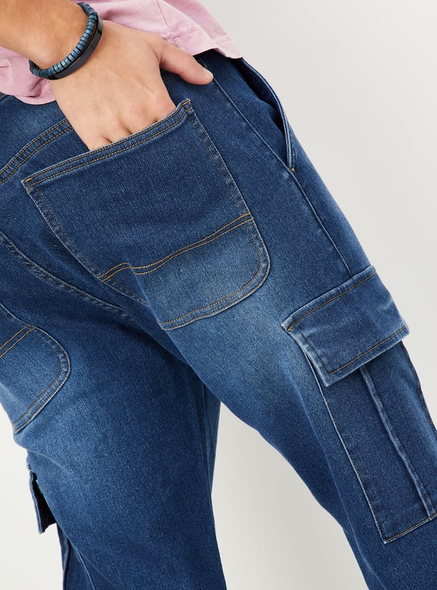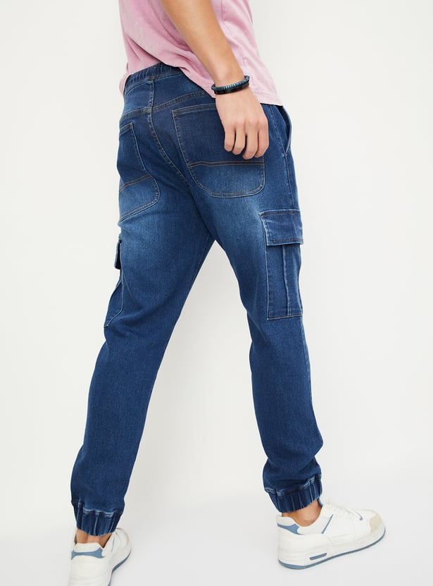 Men Carrot Fit Denim Cargo Joggers