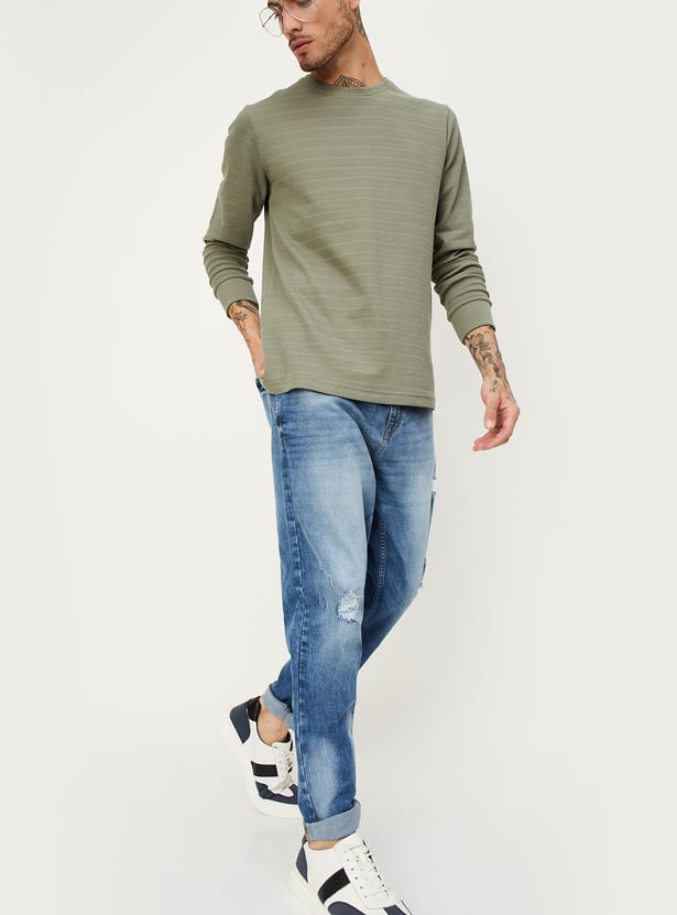 These carrot-fit jeans with a washed surface, distress, belt loop waist, and 5 pockets will jazz up your denim wardrobe. These jeans offer plenty of modern style, ready to mix and match with anything in your wardrobe to lift your look.