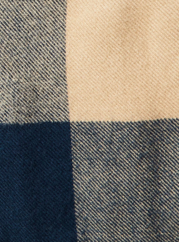 This muffler is a must-have for your winter wardrobe. Featuring a classic checked pattern and frayed hem, it keeps you warm and stylish all day long.