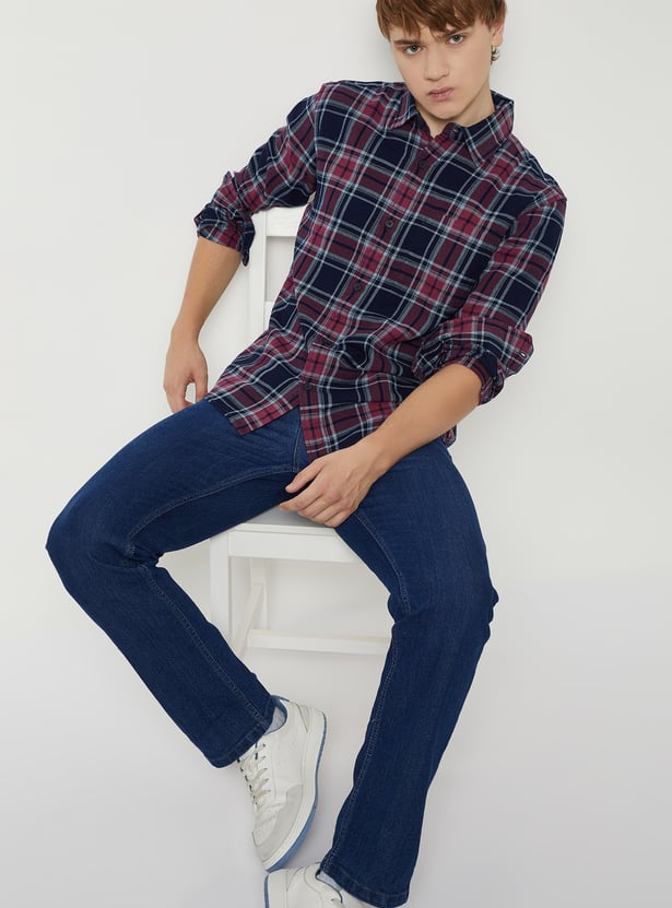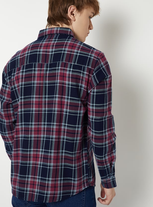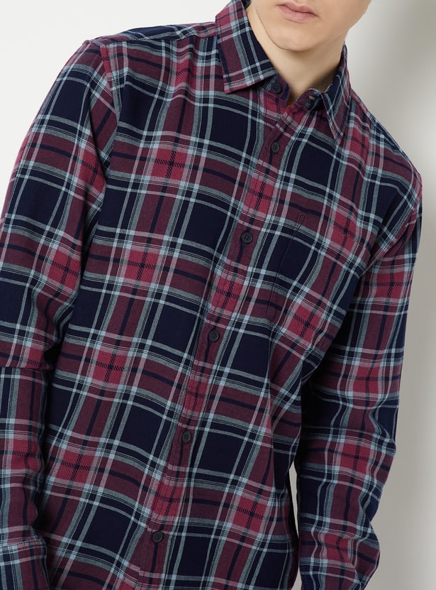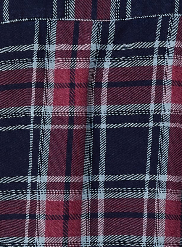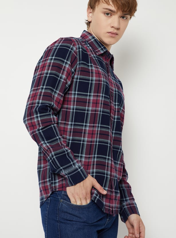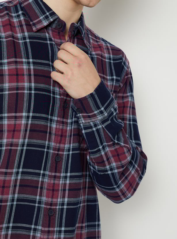 Add timeless appeal to your wardrobe with this checked regular fit shirt. Designed with a spread collar, button closure, and full sleeves with button cuffs, it offers a classic yet versatile look for any occasion.