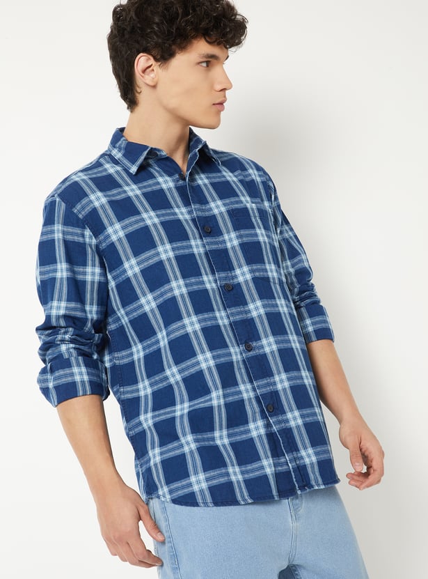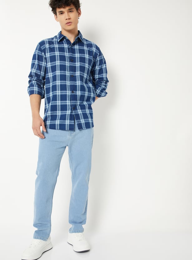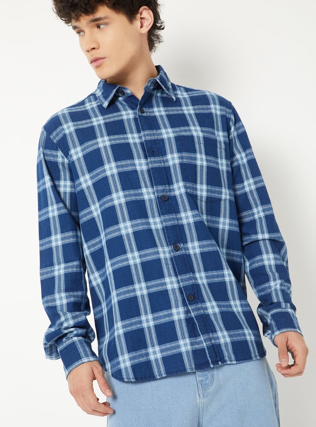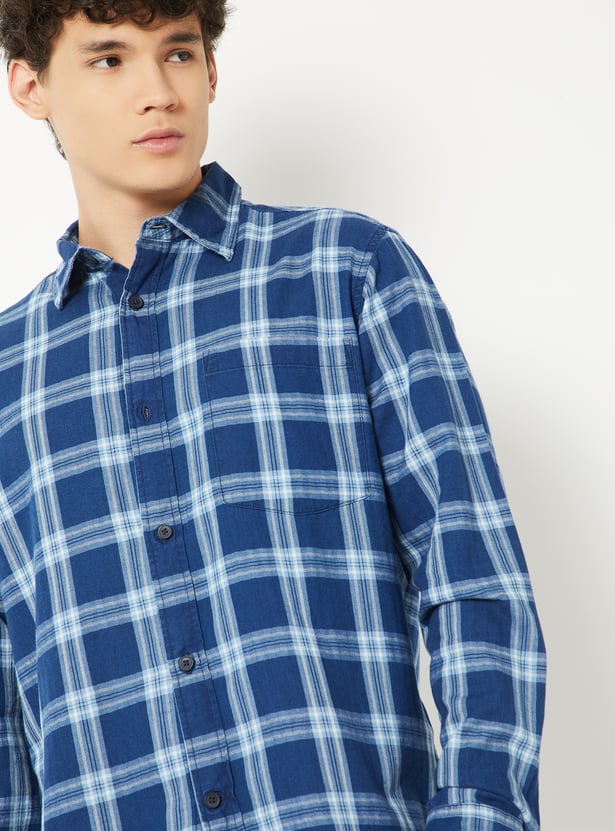 A classic checked regular-fit shirt featuring a sharp spread collar, button placket, and full sleeves with buttoned cuffs. Designed with a practical patch pocket, it blends timeless style with everyday comfort