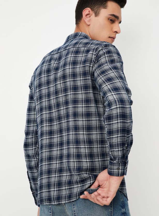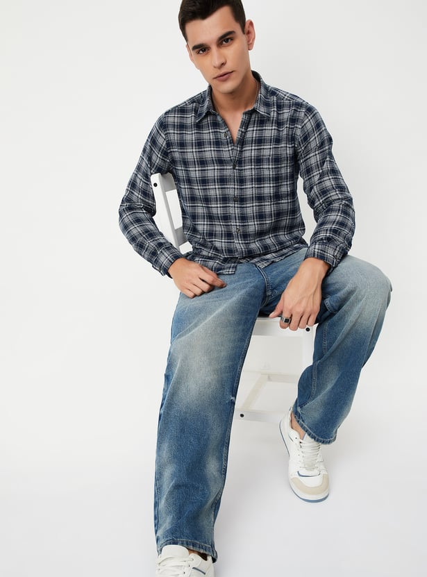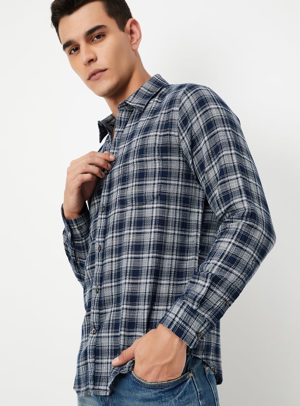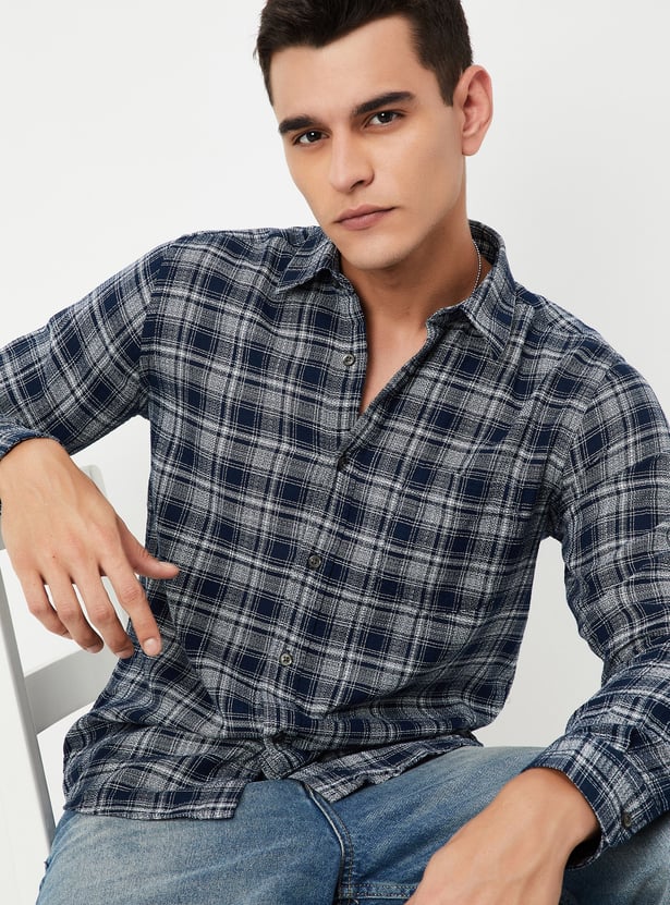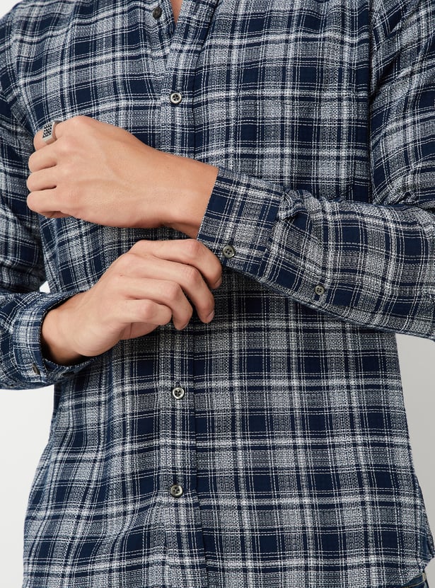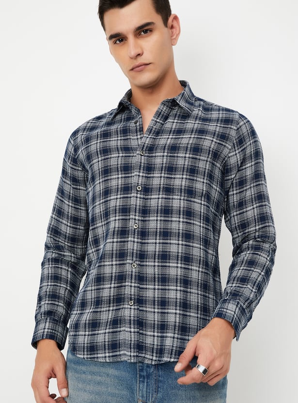This checked slim-fit shirt features a spread collar, button placket, and full sleeves with button cuffs. A perfect blend of style and sophistication, it’s ideal for both casual and semi-formal occasions.