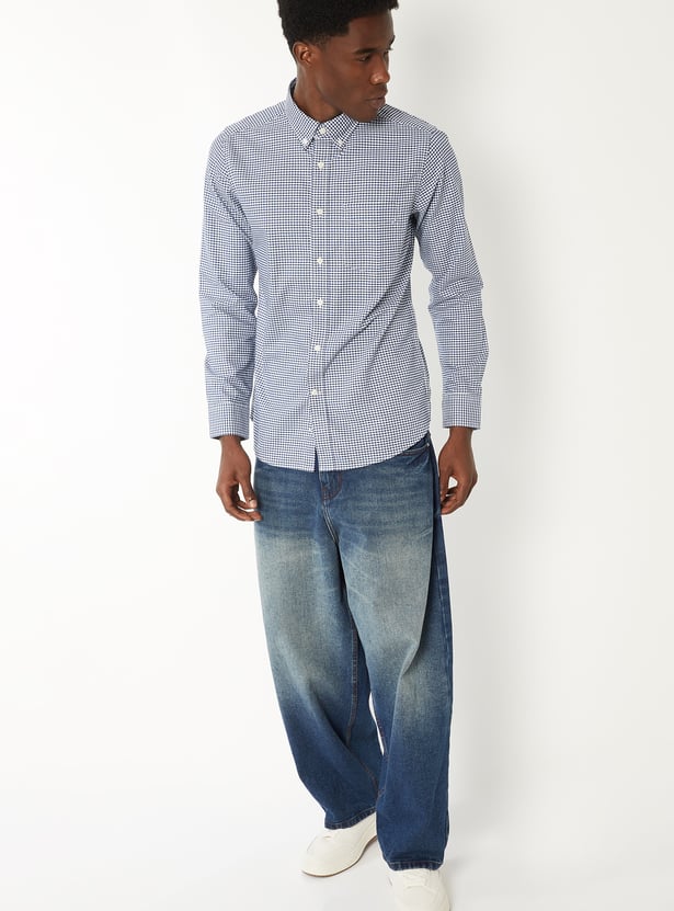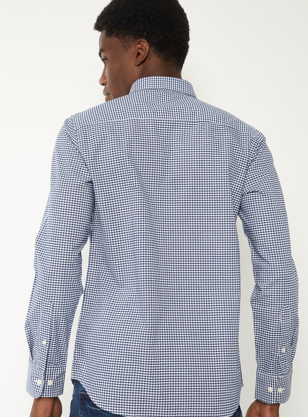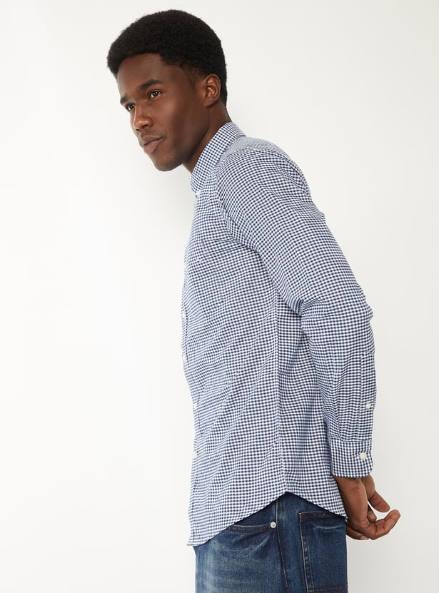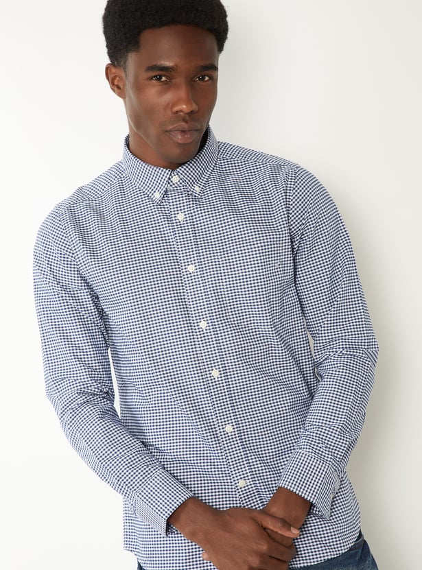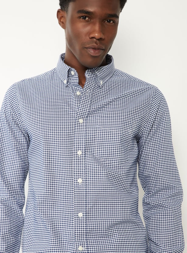 Keep it sharp and versatile with this checked slim fit shirt. Designed with a spread collar, button placket, and full sleeves with button cuffs, it offers a tailored silhouette that’s both polished and comfortable. The patch pocket adds a practical touch while maintaining the clean, structured look.