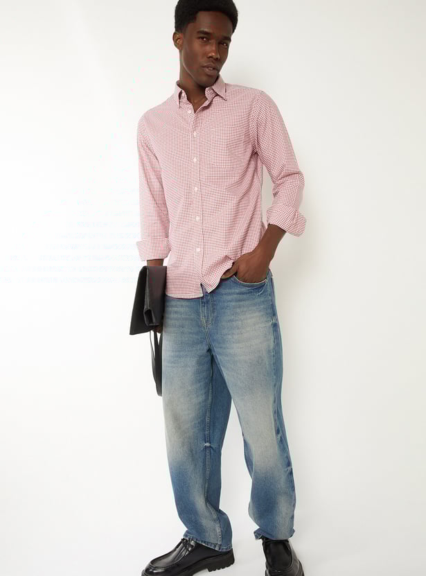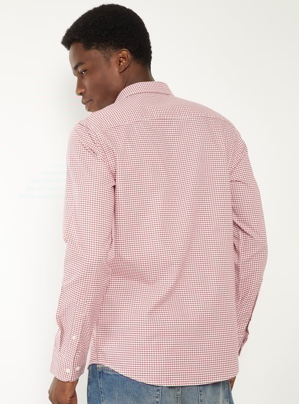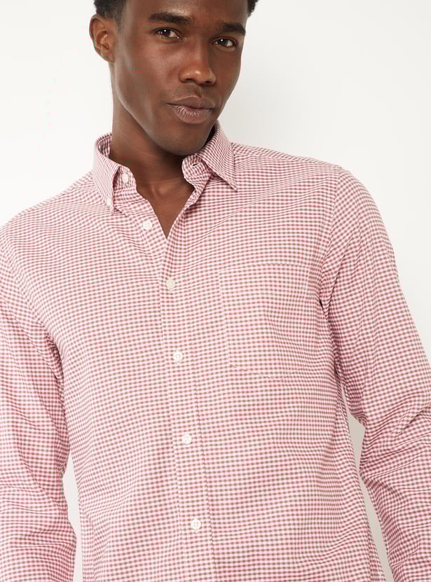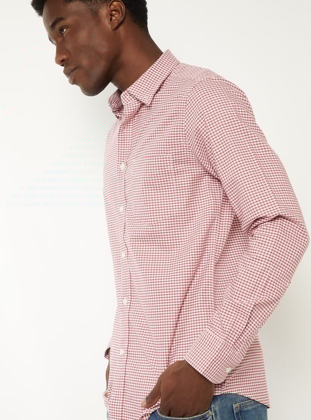Keep it sharp and versatile with this checked slim fit shirt. Designed with a spread collar, button placket, and full sleeves with button cuffs, it offers a tailored silhouette that’s both polished and comfortable. The patch pocket adds a practical touch while maintaining the clean, structured look.