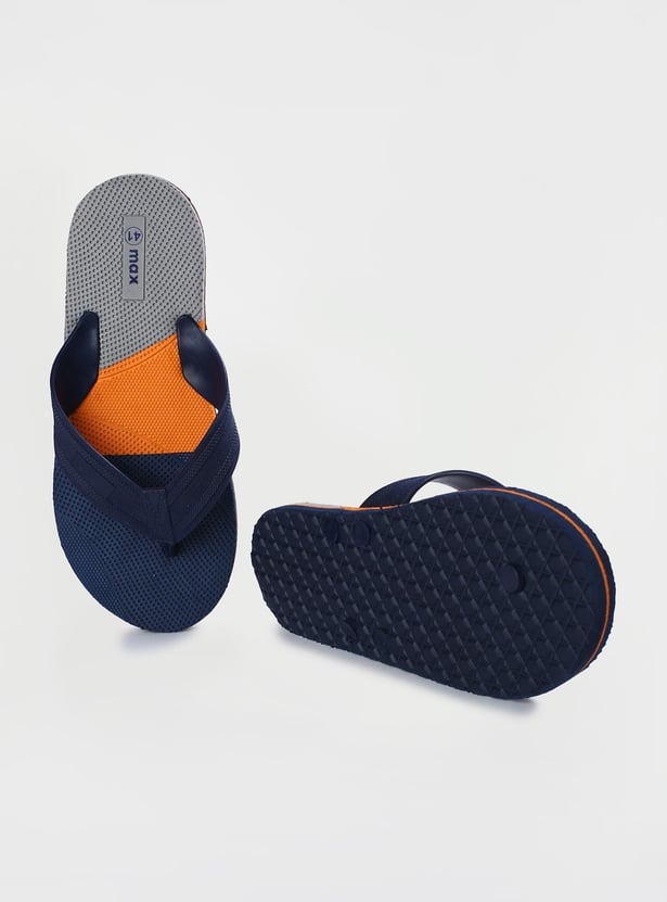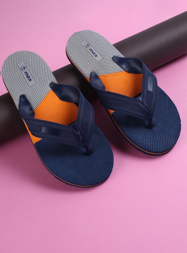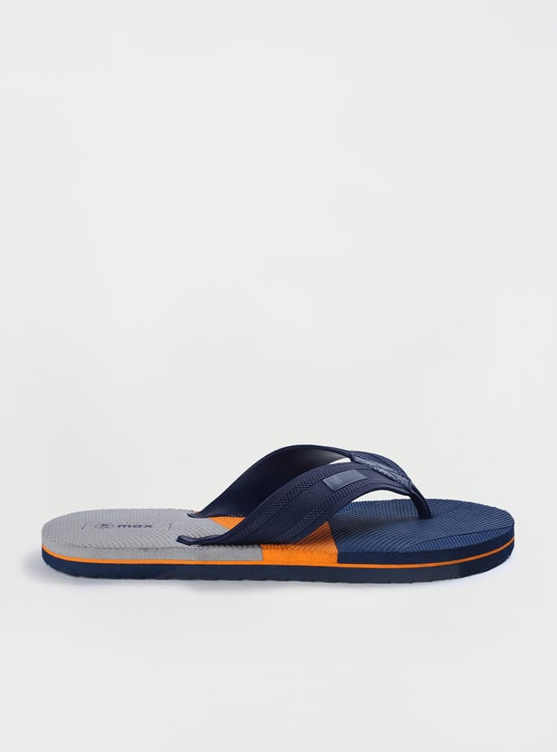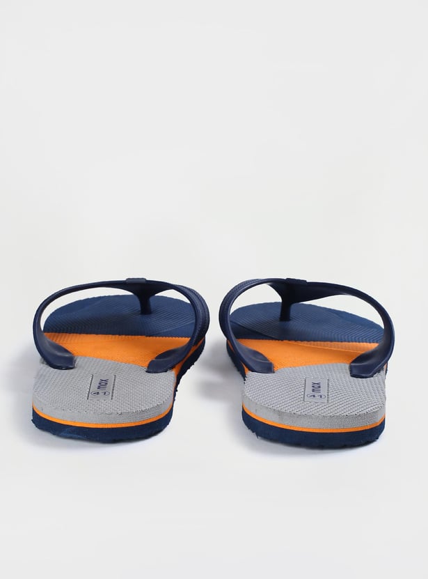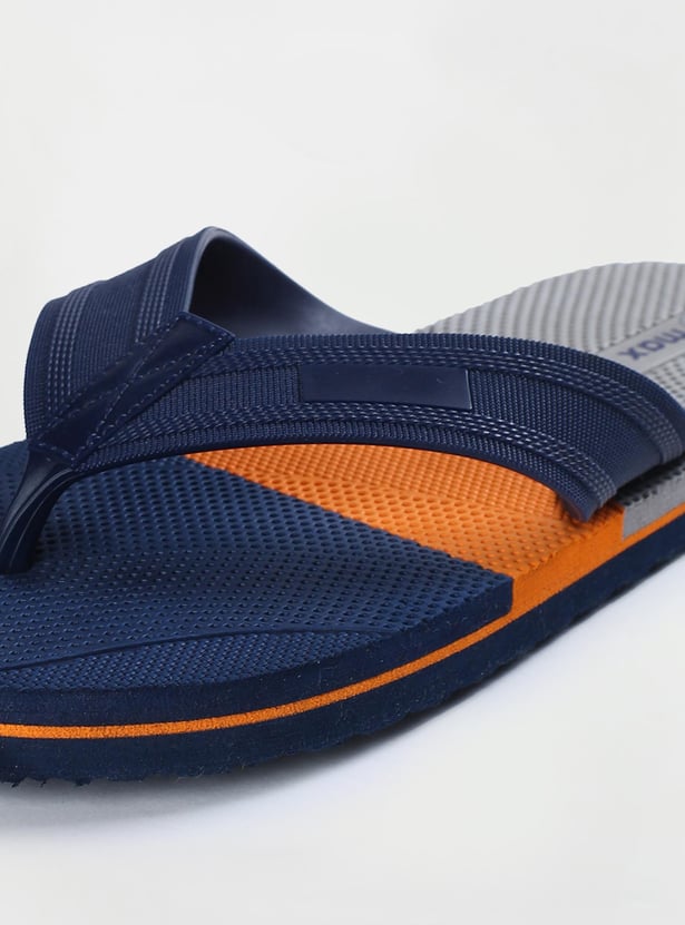 Comfortable, casual, and easy to wear, this pair of flip-flops is a must in your footwear closet. It has an open toe, V-strap, colourblock footbed, and durable outsole.