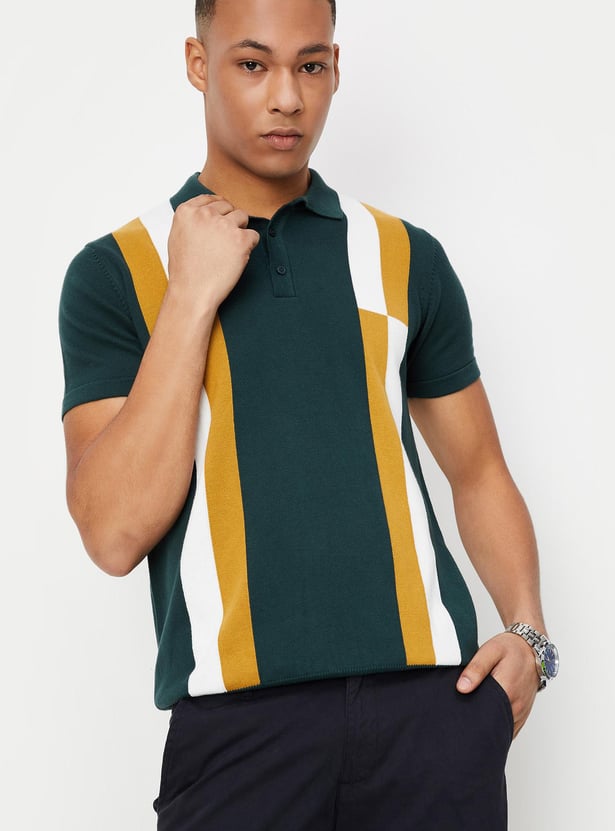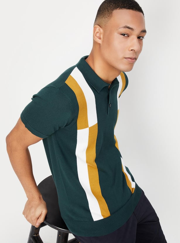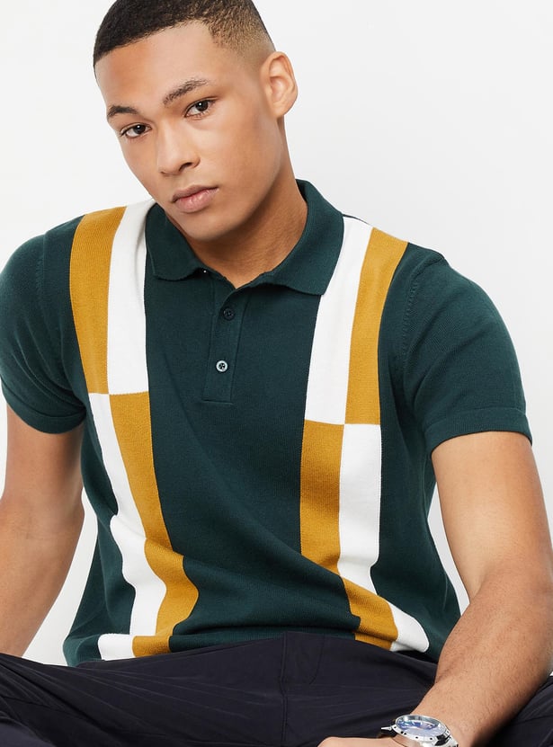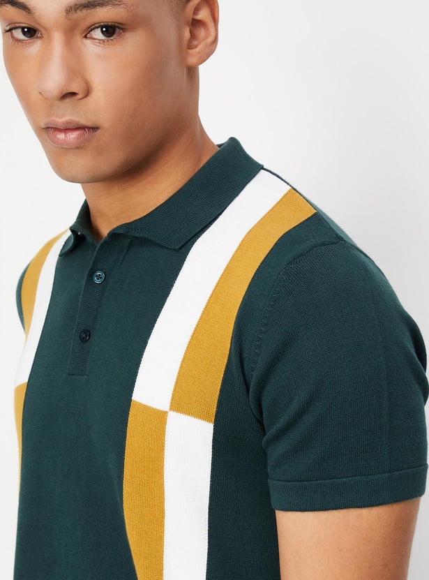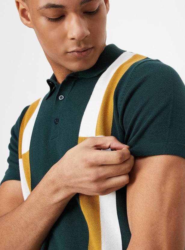 Men Colourblocked Slim Fit Polo T-shirt