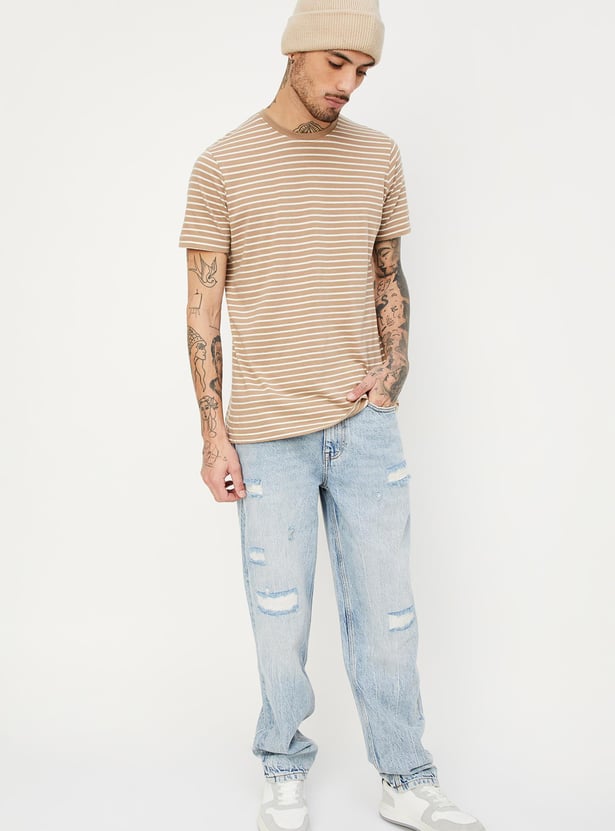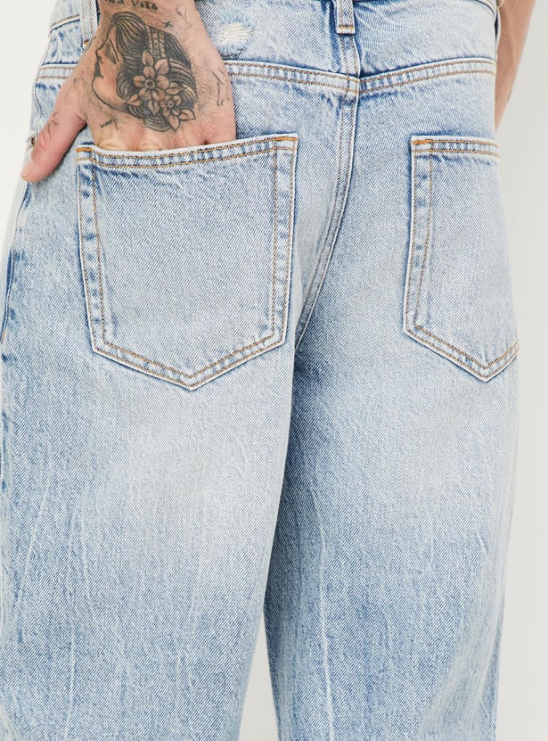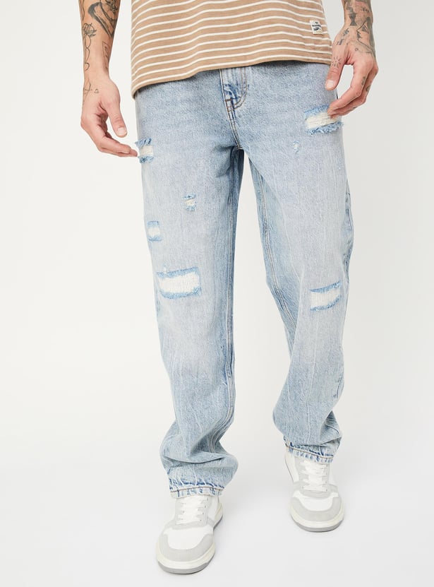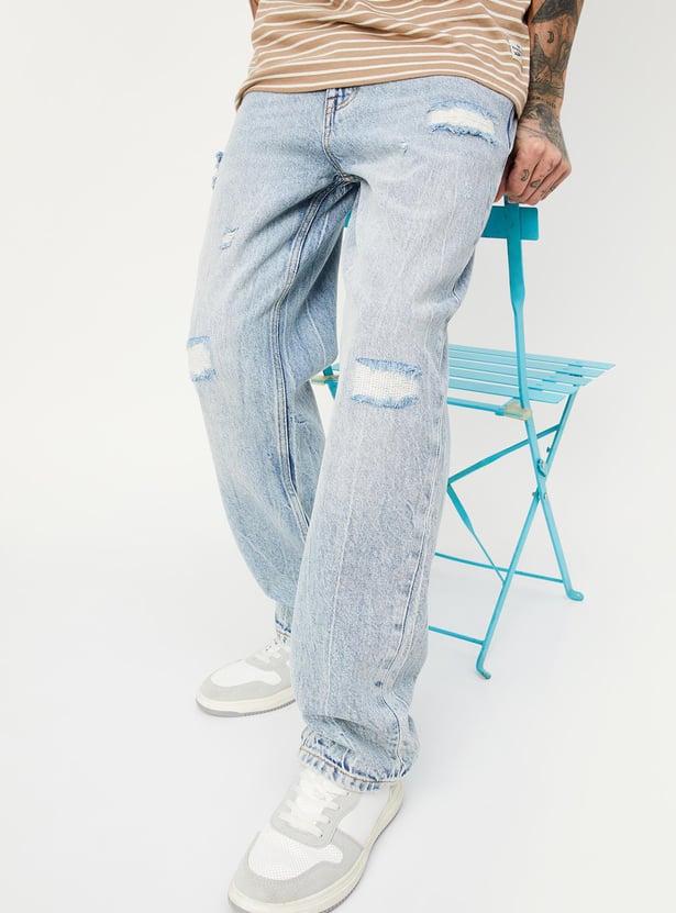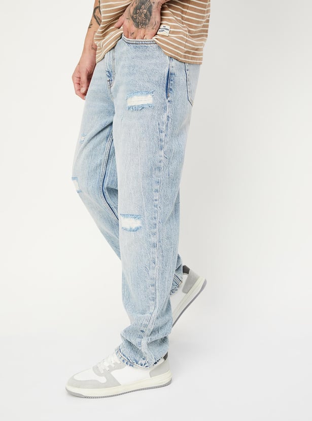 Add an edge to your look with this pair of jeans. It is cut in a straight-fit profile for a roomy fit. This pair is updated with distressed details that exude style. It features a belt loop waist, 5 pockets, and a washed design.