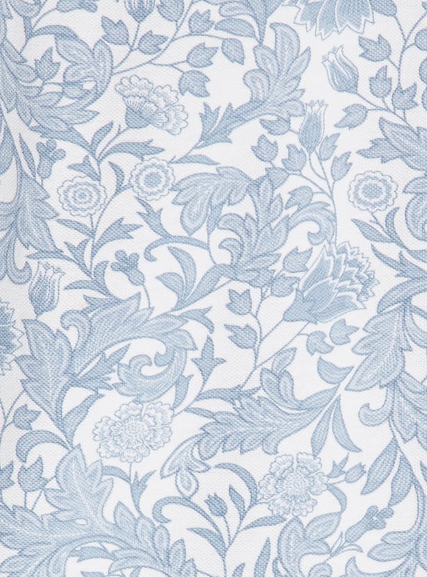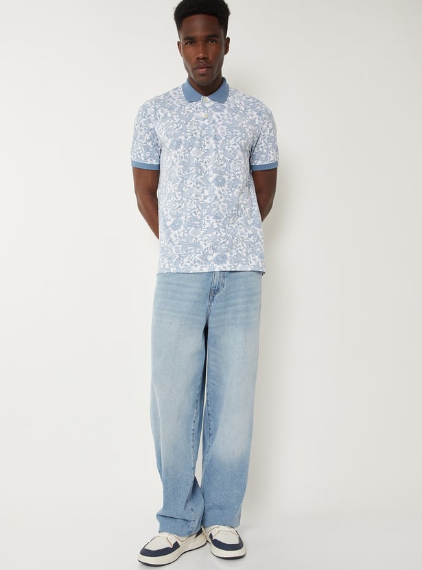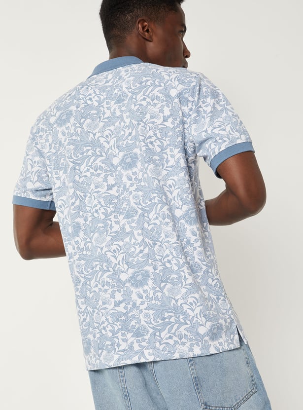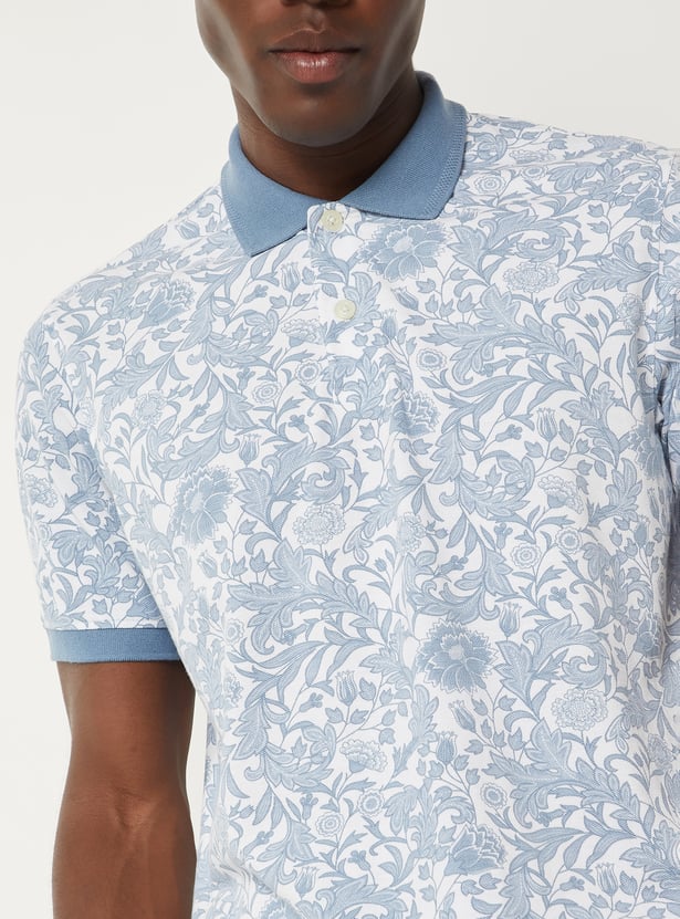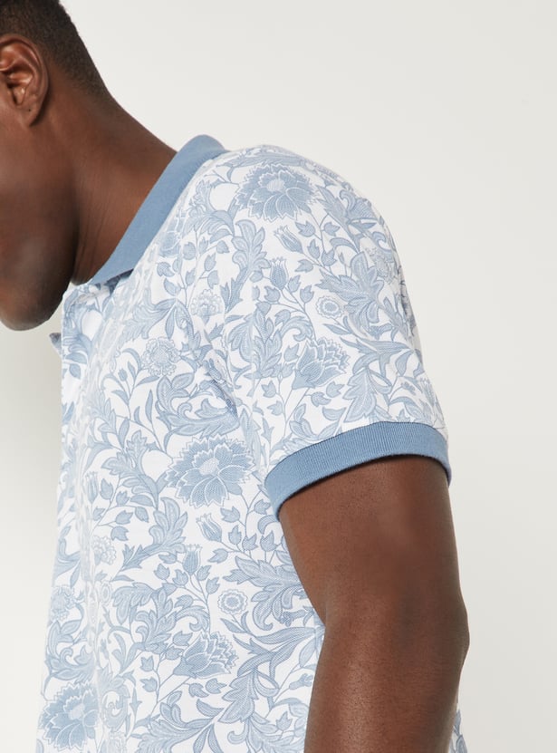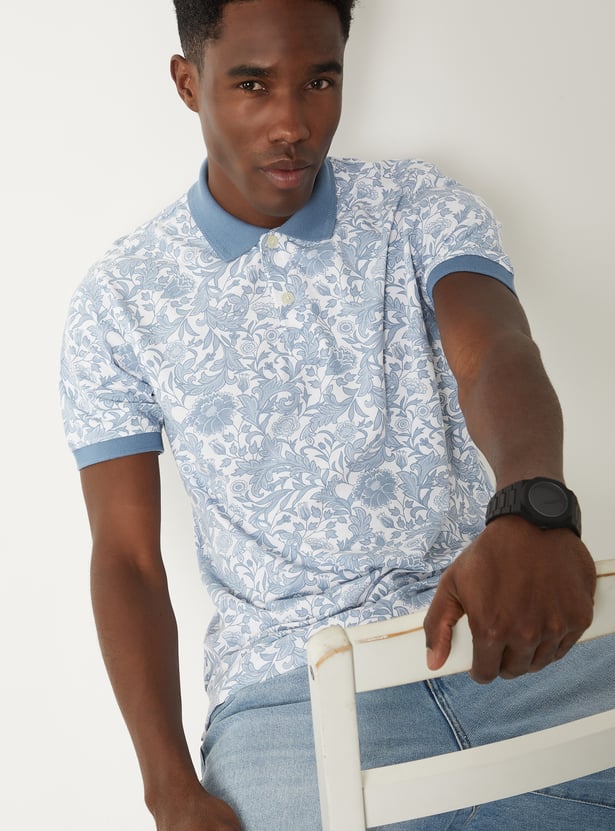 Elevate your casual style with this floral print polo T-shirt. Featuring a classic polo collar, half sleeves, and a two-button placket, it combines refined comfort with timeless appeal.