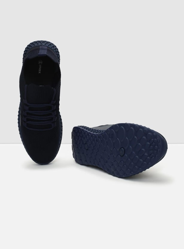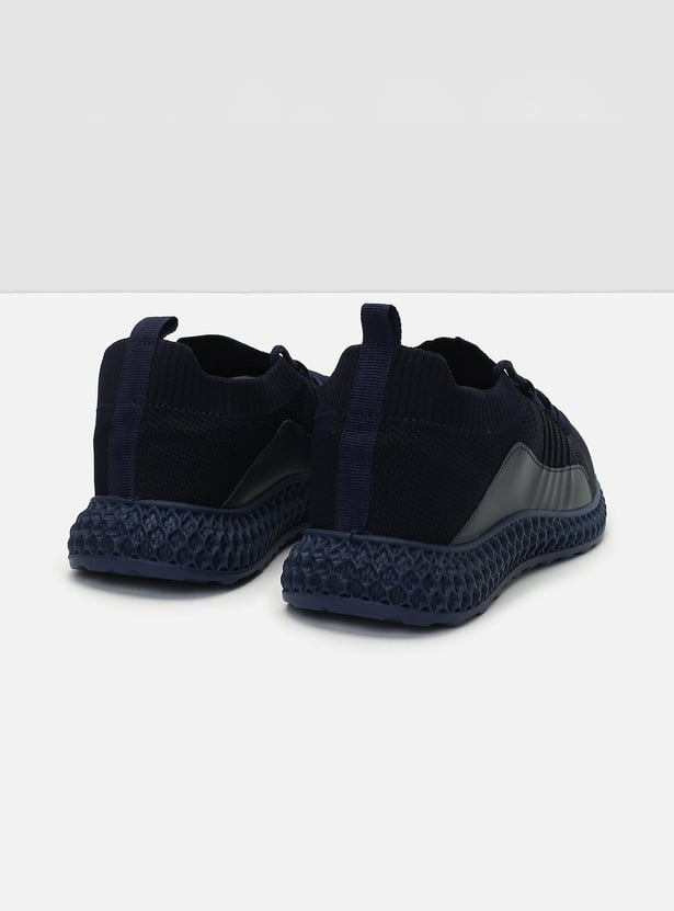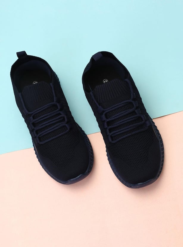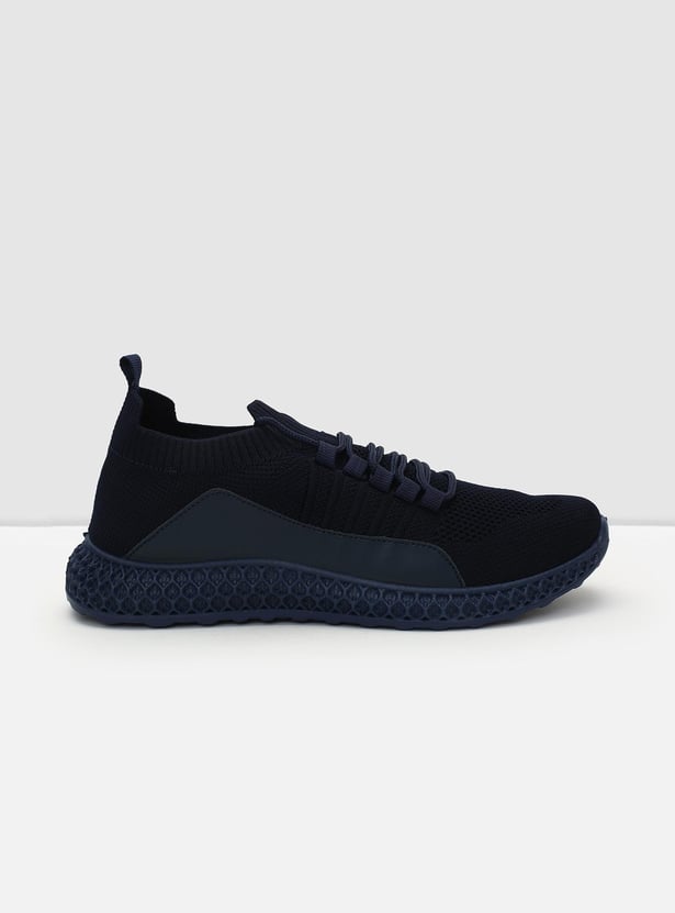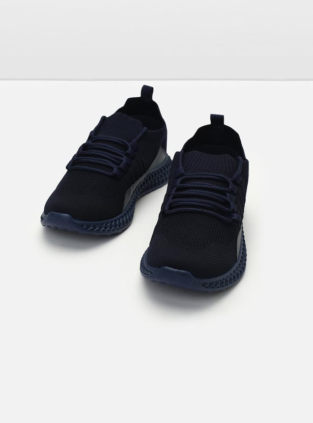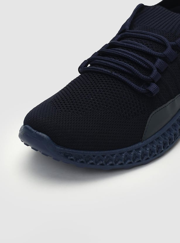 Lace up for a rewarding workout in the comfort of this pair of sports shoes. It features a flyknit upper construction with a round toe, sock collar, printed footbed, and patterned outsole for added grip.